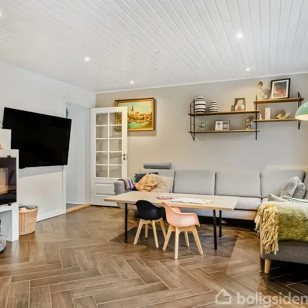 I rolige og naturskønne omgivelser i Sorthat-Muleby finder du denne rummelige og moderniserede familievilla på 160 m², som er ideel til børnefamilien, der ønsker nærhed til både natur og byliv. Her er kort afstand til den lokale økologiske købmand, en dejlig sandstrand samt skovområde med naturlegeplads, mountainbikespor og gode løbe- og gåstier. Samtidig er der blot ca. 3 km til Hasle og 5 km til Rønne, hvor du finder skoler, daginstitutioner, indkøb og idrætsfaciliteter. Langs skoven løber sikre og gode cykelveje direkte mod både Hasle og Rønne. Ejendommen er opført i 1941 og fremstår i pæn og velholdt stand med løbende moderniseringer heriblandt nyere beton-tegltag, nyere hvide vinduer, nye tagrender og gråmalet facader. Grunden er på 1.380 m² og er hyggeligt anlagt med græsplæne, buske, træer og varieret beplantning. Her er indkørsel til dobbelt carport samt flere skønne terrassemiljøer, herunder en sydvestvendt fliseterrasse og en vestvendt terrasse, som indbyder til udeliv det meste af dagen. Fra bryggers/entré er der adgang til en fliseterrasse, hvor solen kan nydes i rolige omgivelser. På grunden findes desuden et udhus, perfekt til opbevaring. Ejendommen indeholder: Bryggers/entré med vaskemaskine og god skabsplads. Badeværelse med håndvask, toilet, bruseniche og gulvvarme. Multirum/gennemgangsværelse med gulvvarme, som kan anvendes fleksibelt efter behov. Værelse i forlængelse af multirum også med gulvvarme. Køkken/alrum med hvidevarer, åben til stue, begge med gulvvarme og direkte udgang til haven. Entré med trappe til 1. sal. På førstesalen findes to værelser, hvor det ene har kvist med kig direkte ind i skoven. Ejendommen er beliggende i et område uden bopælspligt (flexbolig), hvilket giver mulighed for anvendelse både som helårsbolig og fritidshus. Her er en indflytningsklar familievilla, klar til ny ejer.