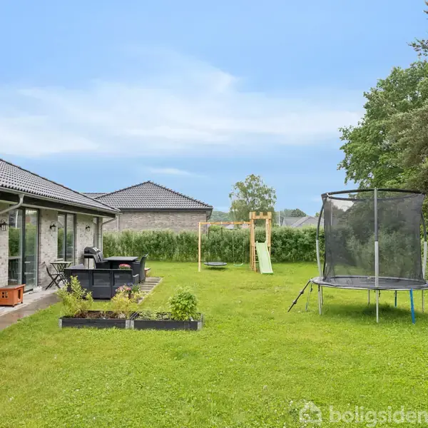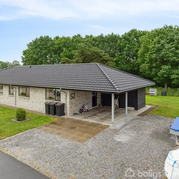 MODERNE FAMILIEBOLIG MED ENERGILØSNINGER OG MAKSIMAL KOMFORT Opført i 2022 – alt fremstår som nyt Gulvvarme i hele huset Solceller og ventilationsanlæg for lavt forbrug og sundt indeklima Stor syd- og vestvendt terrasse med udsigt til naturen På Nylandsvej 57 får I en moderne, indflytningsklar etplansvilla i et af Fårvangs mest attraktive nye kvarterer. Her bor I fredeligt med åbne marker, grønne områder og naturen lige bag haven – og samtidig kun 20 min. fra Silkeborg og 30 min. fra Aarhus