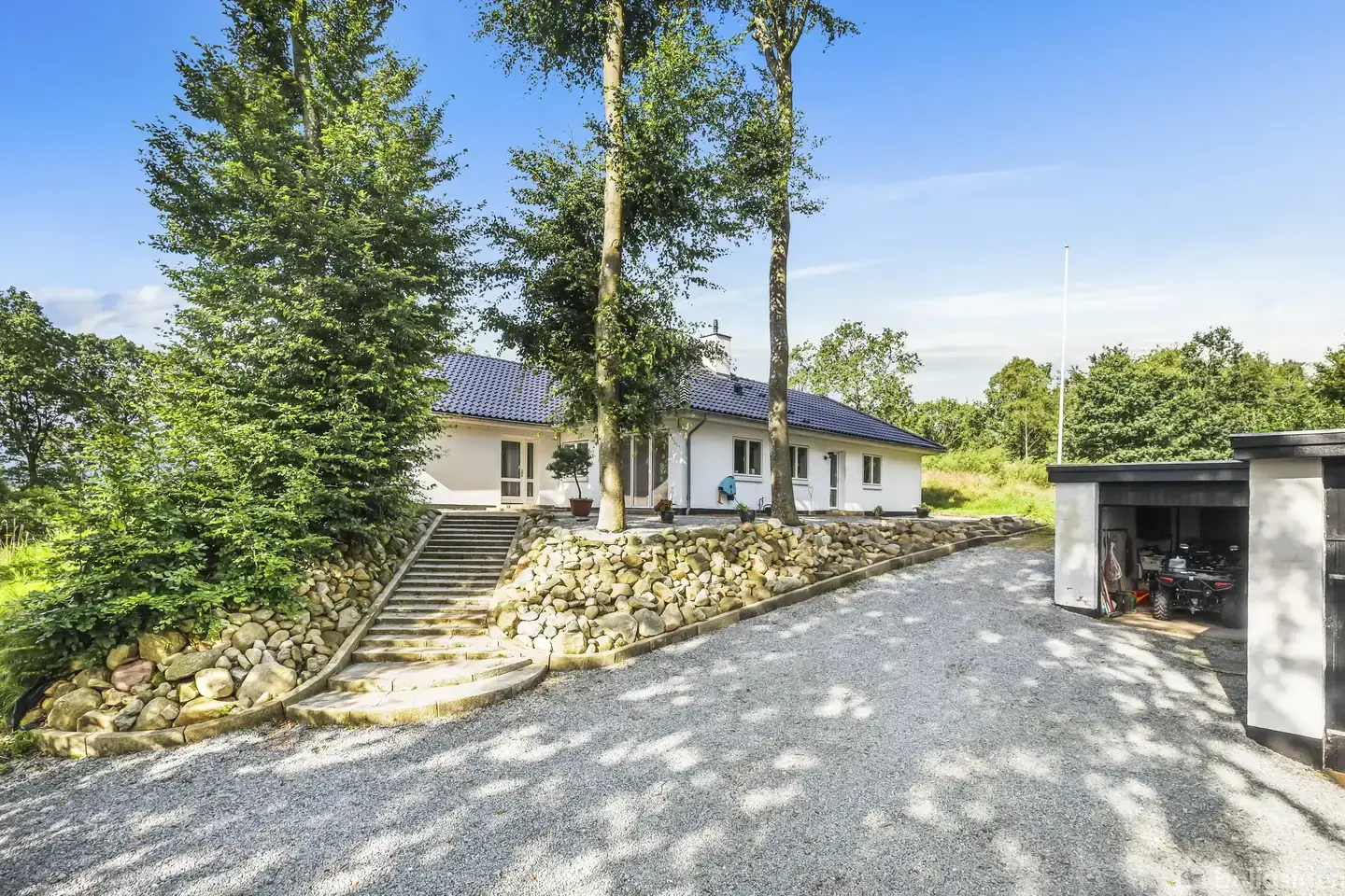 SKØN EJENDOM MED UDSIGT FRA STUENPå Nymindegabvej 31, 6851 Janderup Vestj., ligger et sandt vestjysk paradis, hvor naturens skønhed og historiens vingesus mødes i perfekt harmoni. Denne charmerende ejendom, som synes at være udskåret direkte fra et eventyr, byder på en oase af fred og ro i hjertet af det danske landskab. Når du nærmer dig denne perle af en adresse, bliver du straks mødt af en skov af frodige træer, der står som naturens egen parade for at byde dig velkommen. Huset, der ligger ge
