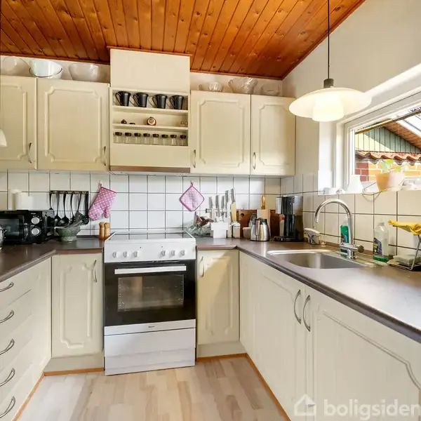 Allerede ved ankomsten til Nyskovvej 1C i Ilskov fornemmer du, hvordan dette rækkehus inviterer til et trygt og overskueligt hjem med plads til udfoldelse både inde og ude. Her forenes hyggelige rammer med et stærkt lokalsamfund, og du føler dig hurtigt velkommen. Forhaven er velholdt og byder på en hverdag tæt ved grønne omgivelser og et levende fællesskab året rundt. Indenfor mødes du af en bolig, hvor varme og harmoni præger atmosfæren. Stuen fungerer som et naturligt samlingspunkt for famil