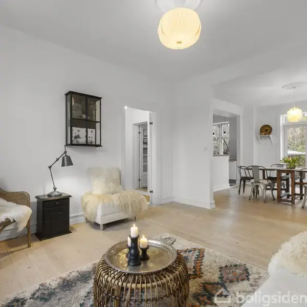 Charmerende halvt dobbelthus med lyse rum og et hyggeligt uderum