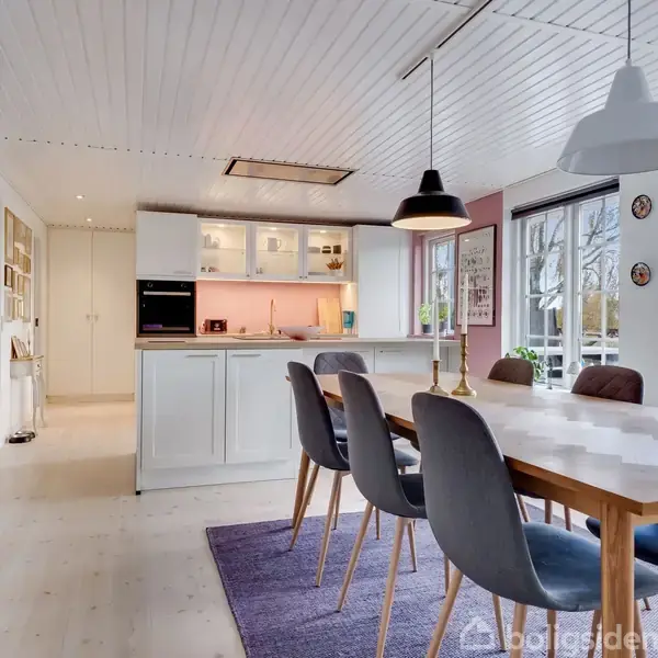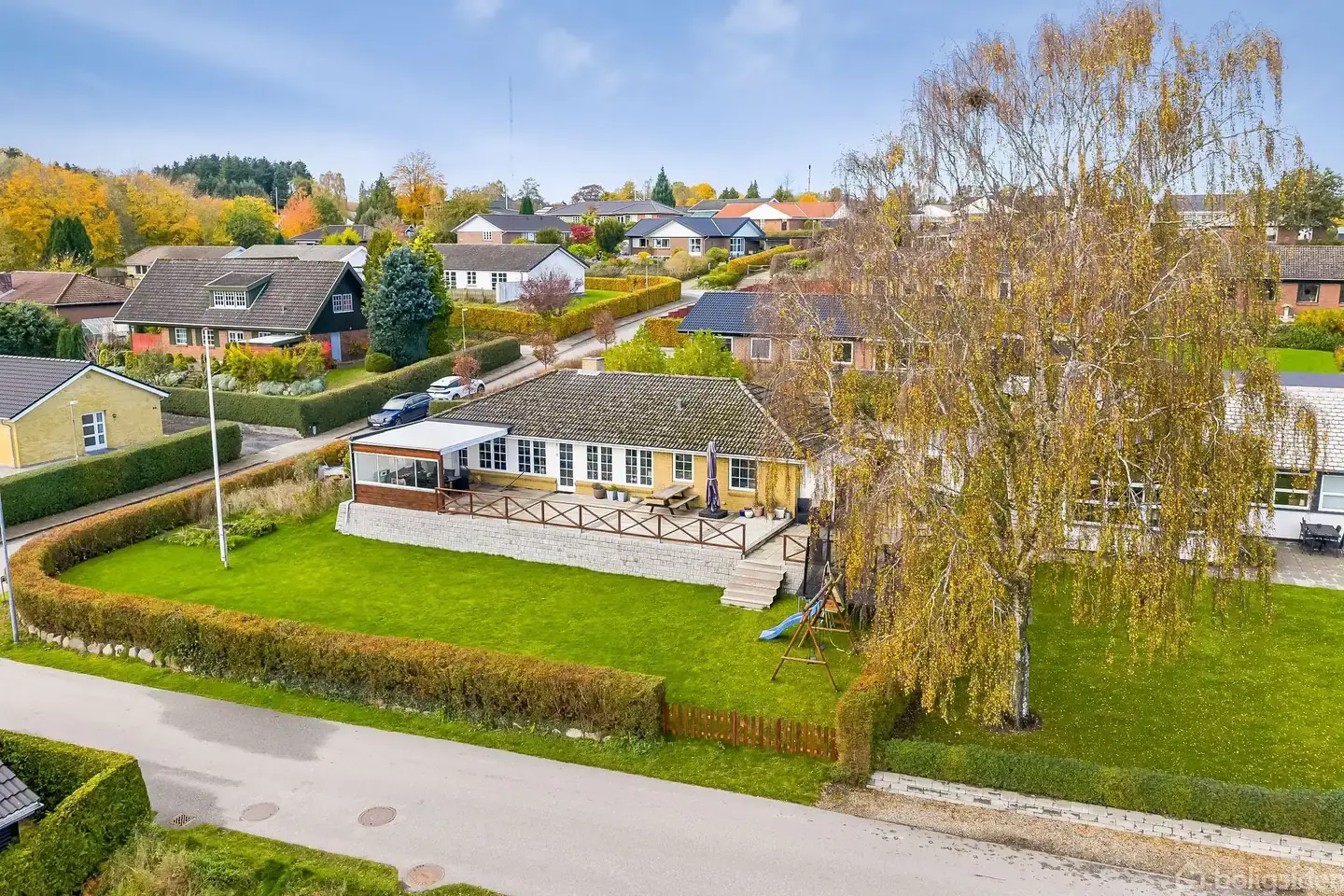 Med en fantastisk udsigt til klimasøerne, beliggende helt centralt i Tommerup finder du denne bolig på Nyvej 66. Her får du en virkelig skøn ejendom på 125 velindrettede boligkvadratmeter, omgivet af dejlig natur, men med alt hvad du har brug for lige ved hånden. I området finder du gode skoler og børneinstitutioner, et rigt foreningsliv og gode naboer. Desuden har du kun et kvarters cykeltur til Tommerup Station, der på bare ca. 8 minutter tager dig ind til hjertet af Odense. Ved ejendommen har du mulighed for at holde bilen i carporten - ligesom der er masser af plads til parkerende gæster, trailer og andet. Fra carporten har du meget kort til hovedindgangen - en bekvemmelig detalje, når børn og voksne kommer hjem med hænderne fulde. Den kombinerede entré og bryggers byder velkommen med en hjemlig atmosfære, god opbevaringsplads og plads til vaskemaskine og tørretumbler. Herfra åbnes der op til resten af huset, der består af køkken og stue, to værelser og et soveværelse, samt to badeværelser. Køkken og stue, der ligger i åben forbindelse med hinanden, er beriget med et betagende lysindfald og udsigt fra de charmerende, sprossede vinduer. Her er smukke gulve og brændeovnen skaber en varm stemning. Køkkenet fra 2023 er elegant indrettet med hvide fronter og glaslåger, smukke messinggreb og en bordplade i træ, der tilfører rummet karakter og hygge. Det er et indbydende samlingspunkt, hvor æstetik og praktik går hånd i hånd. Fra køkkenet er der frit udsyn gennem spiseafdelingen til sofa- og tv-hjørnet, hvilket binder opholdsrummet sammen og skaber en følelse af nærvær og fællesskab. Fra køkkenet kan man fortsætte videre til de to værelser, der begge er holdt lyse og i en størrelse, der er ideel til alt fra kontor, børne- eller gæsteværelse. I det ene værelse er der desuden indbygget skabsplads. Badeværelserne har begge toilet, brus og god opbevaringsplads. Indretningen er charmerende med badeværelsesmøbler i blålige toner og messinggreb. Soveværelset er todelt og rummer derfor mange muligheder. I det ene rum er der plads til en stor dobbeltseng, mens der i det tilstødende rum med store indbyggede skabe kan indrettes et walk-in closet eller et ekstra børneværelse, hvis man har små børn, der nyder godt af at være tæt på forældrene. Fra stuen er der direkte udgang til den store sydvendte terrasse, der er delvist overdækket. Her kan du nyde morgenkaffen i solen, og trække ind i skyggen i de varme eftermiddagstimer. Terrassen strækker sig helt om til carporten, hvilket giver plads til at indrette sig med grill, solsenge og loungeområde. På terrassen finder du desuden brændeskur og skur med plads til haveredskaber og cykler. Herfra fører en trappe ned til den hyggelige have, hvor børnene kan udfolde sig på trampolinen, spille bold eller tage på eventyr i det grønne område ved klimasøerne. Lyder det som noget for dig? Så kontakt os for en fremvisning!