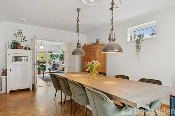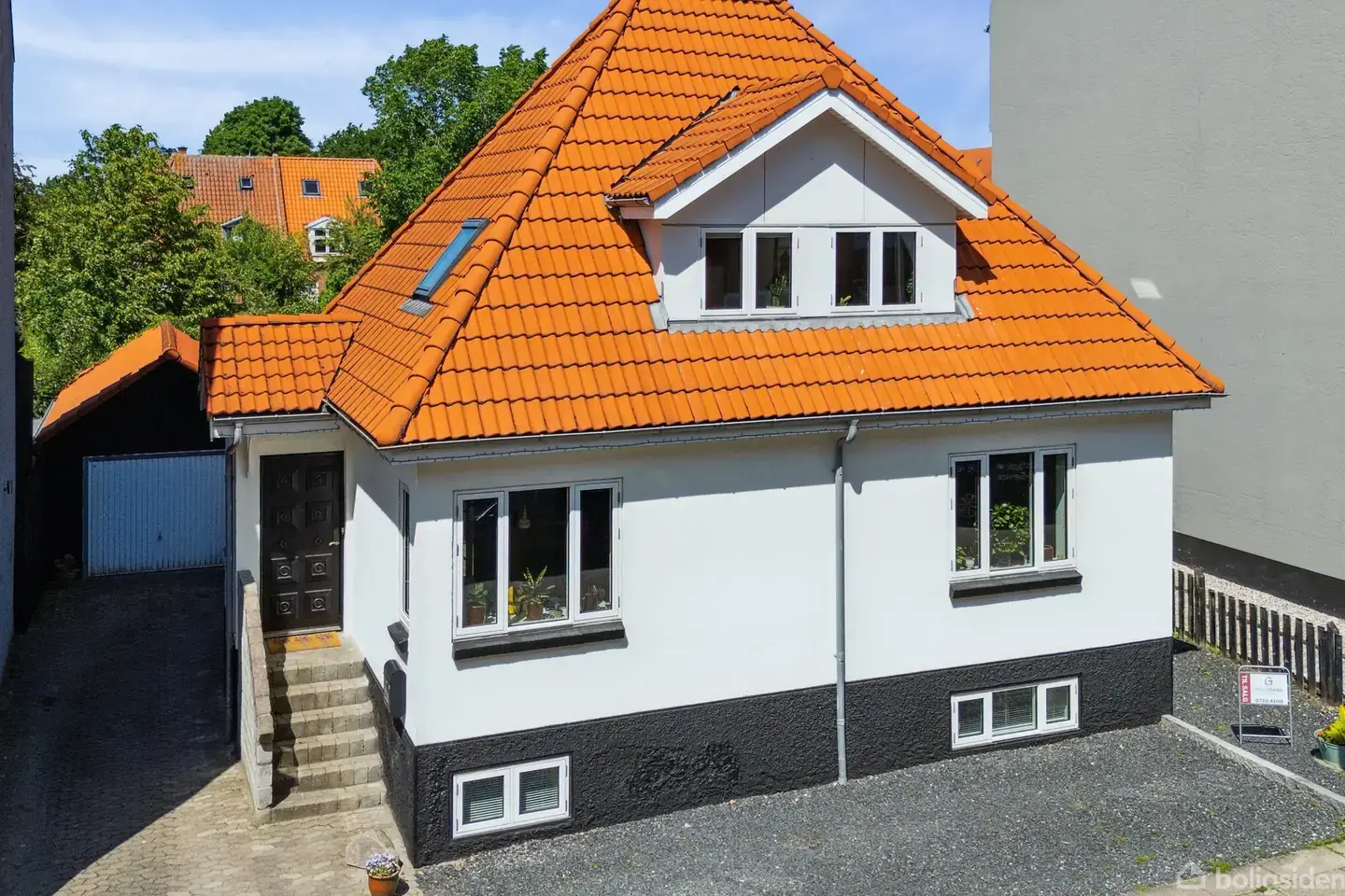 Drømmer I om en klassisk villa med byhusstemning, hvor I både får en ugeneret og frodig have og alle byens bekvemmeligheder lige uden for døren? Denne charmerende bolig er ideel til jer, der måske kommer fra lejlighed i Aarhus og nu ønsker mere plads, nærhed til skole og fritidsaktiviteter og ikke mindst et trygt hjem med grønne omgivelser. Med sildebensparket, stuklofter, franske døre og ny miljørigtig brændeovn emmer boligen af atmosfære og kvalitet. Brændeovnen, en Aduro H1, der tidligere har vundet EU´s miljøpris indenfor "Bæredygtige produkter og services) kan betjenes via App. Her får I 124 veldisponerede kvadratmeter, som fordeler sig på et lyst og indbydende køkken-alrum i åben forbindelse med både spisestue og opholdsstue. De smukke detaljer og rummenes naturlige flow skaber de perfekte rammer om familielivet – og fra stuen er der direkte adgang til den overdækkede terrasse og den skønne, private have. På førstesalen finder I et stort soveværelse med originale plankegulve og to dejlige børneværelser, som begge har et skønt lysindfald. Et ekstra værelse med kig til haven kan fungere som hjemmekontor, legeværelse eller gæsteværelse. Et lyst gæstetoilet med klinker fuldender etagen. Kælderen er særdeles brugbar og rummer et pænt badeværelse med bruseniche, et godt bryggers med vaskefaciliteter, et stort disponibelt rum samt et hyggeligt viktualierum. Her er god plads til både opbevaring og aktiviteter, der kræver lidt ekstra plads. Haven er en helt særlig oplevelse – grøn, lukket og stemningsfuld. Her kan børnene lege trygt, mens de voksne nyder kaffen på terrassen eller samles omkring bålstedet. Den rolige og private atmosfære gør det nemt at finde ro midt i byen. Beliggenheden er en stor styrke: I bor tæt på skole, HTX, STX, pasningstilbud, grønne parker, stadion og byens indkøbsmuligheder. Alt sammen i gå- eller cykelafstand – og med banegården lige i nærheden. Samtidig ligger villaen tilbagetrukket og privat, så I får det bedste fra begge verdener. Boligen er løbende moderniseret og fremstår klassisk og tidssvarende. I 2024 er størstedelen af vinduerne udskiftet, så både komfort og energiforbrug er tænkt ind. Den nye brændeovn af mærket Aduro H1, har tidligere vundet EU´s miljøpris indenfor "Bæredygtige produkter og services). Herudover er der installeret to stk. Air Pro V2.0 i kælderen - et ventilator med varmegenvinding på op til 97 %, og som er med til at sikre et sund og behageligt indeklima. Her får I en komplet familievilla med masser af sjæl og en beliggenhed, der gør hverdagen nem og tryg for både børn og voksne. Velkommen hjem.