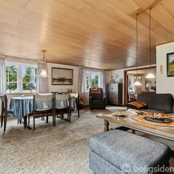 Velkommen til Øksendal 4 – en skøn og rummelig etplansvilla med masser af plads, ro og charme midt i det hyggelige Lødderup, kun en kort køretur fra Nykøbing Mors.Allerede ved ankomsten bliver man mødt af den imponerende store indkørsel – her er der god plads til både biler, gæster og måske en campingvogn eller trailer. Huset byder velkommen via en rummelig entre, som leder videre ind til de lyse og indbydende opholdsrum.Her finder du to stuer – en hyggelig mindre stue perfekt til afslapning, og