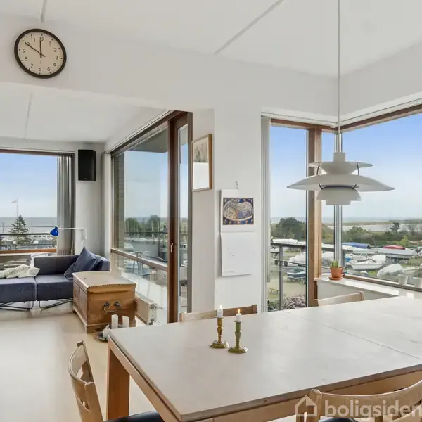 Lys lejlighed ved Amager Strandpark Udsigten er fantastisk fra denne moderne og tiltalende lejlighed ved Amager Strandpark, for med den høje placering på femte sal kan I nyde synet af den foranderlige himmel og havnen ved Øresund. I kan blandt andet fortabe jer i vuet fra den store altan, eller I kan spejde ud ad vinduerne inde fra det rummelige og åbne opholdsmiljø. I har sågar en altan mere, der har udgang fra et af de i alt fire værelser, og endelig kan I se frem til to badeværelser. Glæd jer