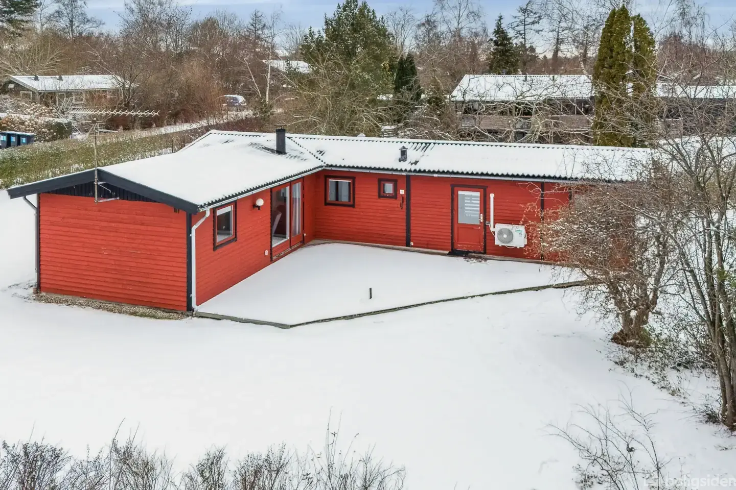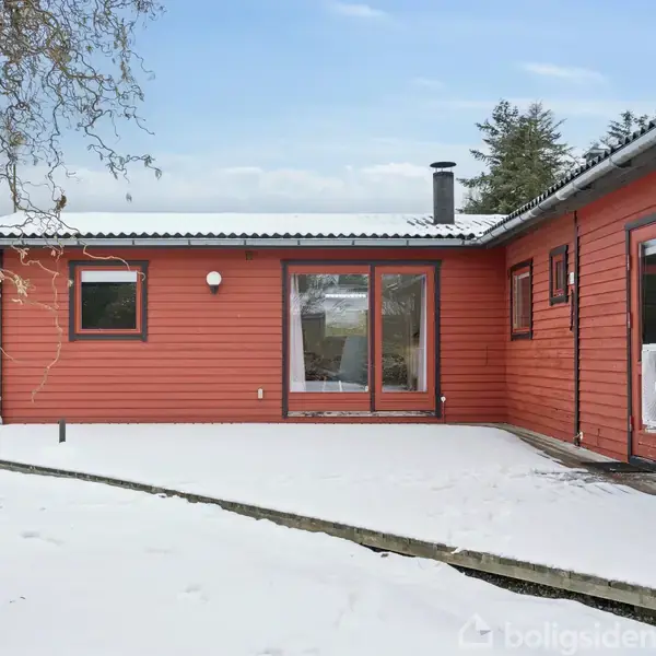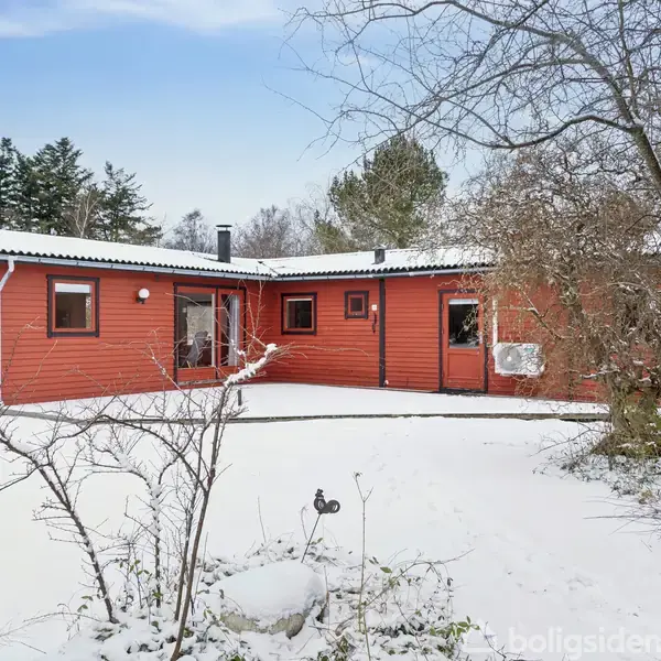 Fritidshus på 89 m² med unik beliggenhed med udsigt til sø - og meget tæt på kyst og natur.Et fritidshus på 89 kvadratmeter med tre værelser spredt over en grund på 1202 kvadratmeter giver plads til både ophold og privatliv. Ejendommen fra 1978 er renoveret i 2005 og fremstår med en klassisk, rød facade og sort tag, som står godt til den grønne natur omkring.Store vinduespartier og en fransk dør mod terrassen giver en åben forbindelse mellem inde- og uderum, hvor det bløde dagslys strømmer ind o