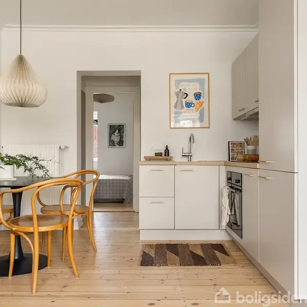 I en høj stuelejlighed i en smuk ejendom fra 1935 udbydes denne indflytningsklare toværelses ejerlejlighed, beliggende midt i et af Københavns mest sprudlende og autentiske kvarterer. Her bor du i et område i konstant udvikling, med kultur, mangfoldighed og byliv lige uden for døren.Lejligheden er nyistandsat og byder på et lyst og indbydende køkken alrum med god plads til både spiseafdeling og sofaarrangement. Køkkenet er udført i en stilfuld, dæmpet grå nuance, som skaber ro og balance i rumme