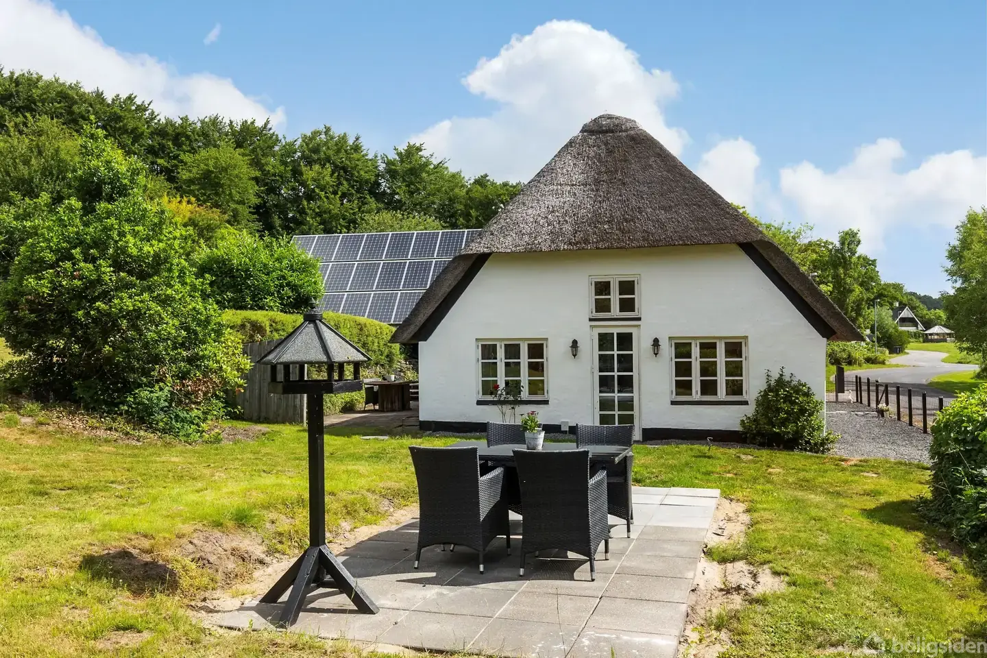Charmerende stråtækt ejendom med udsigt til åbne marker – 205 m² bolig i fredelige Kousted