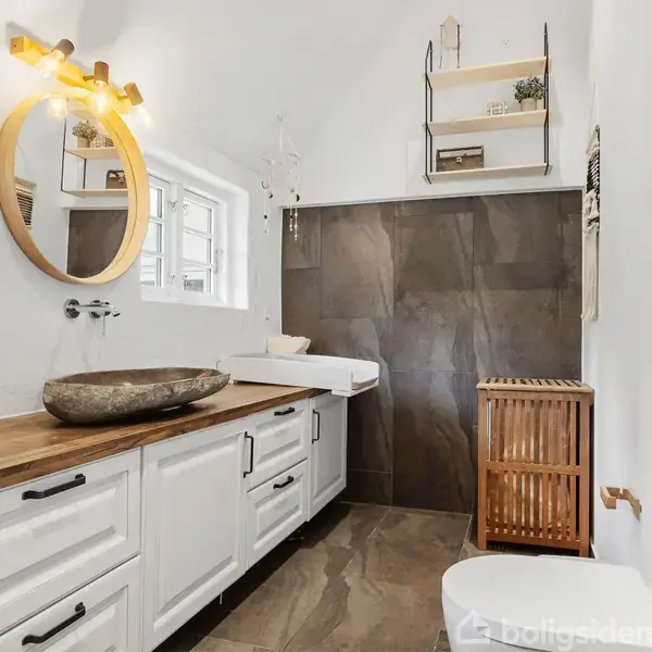 Bemærk: Det faktiske varmeforbrug er lavere end det oplyste forbrug i energimærket. Her får du 205 m² bolig i klassisk stråtækt stil, placeret i rolige omgivelser i Kousted – kun ca. 10 minutters kørsel fra Randers. Ejendommen fremstår idyllisk med bindingsværk, stråtag og hvidpudsede facader. Indenfor møder du en bolig med masser af charme og funktionel indretning. Stueplan byder på en hyggelig opholdsstue med synlige bjælker og god atmosfære – perfekt som familiens samlingspunkt. Sælger har fået bygget en hems i stuen, som med fordel kan fungere som en børneafdeling. Køkkenet ligger separat og er praktisk indrettet med god skabsplads, dog uden mulighed for spiseplads. Herudover rummer stueplan et pænt moderniseret badeværelse, et rummeligt bryggers samt et værelse. På førstesalen finder du tre gode værelser og en møblerbar repos, som oplagt kan anvendes til kontor, legeområde eller ekstra ophold. Flere af rummene har udsigt til åbne marker og den omkringliggende natur. Udendørs får du en nem og overskuelig have med terrasse, græsplæne og god afstand til naboer. Til ejendommen hører desuden en dobbelt carport, hvorfra du har direkte adgang til huset gennem garagen. Derudover er der to skure: Ét i forlængelse af huset, ideelt til opbevaring af f.eks. cykler, og ét i haven, som både kan anvendes til haveredskaber eller eventuelt som løbegård til hund, da området er indhegnet udefra. Ejendommen er ideel til dig, der ønsker en bolig med historie og personlighed – og som drømmer om et fredeligt liv tæt på naturen, men med byen inden for rækkevidde.