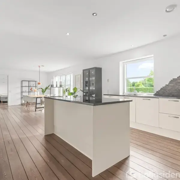 Øsby Stadionvej 83 er en indflytnings villa, som er opført i 2007 og beliggende på en af Øsbys mest attraktive grunde med udsigt til grønne områder. Her får du et hjem, der kombinerer moderne komfort, god plads og en beliggenhed, hvor både ro og natur er i højsædet. Ejendommen er opført på en 1.340 m² stor grund, og huset rummer 184 m² boligkvadratmeter med gulvvarme i hele huset. Hertil kommer en integreret garage og udhus som naturligvis også er med gulvvarme – perfekt til både parkering, opbevaring og hobby. Boligen er praktisk indrettet med en tydelig opdeling i to afdelinger. I børneafdelingen finder du tre gode værelser samt et badeværelse. Midt i huset ligger det store leverum – køkken, alrum og stue i ét – hvor lysindfaldet og den åbne planløsning skaber en naturlig ramme om familiens hverdag. Fra køkken-alrummet ledes du videre til forældreafdelingen, som rummer et rummeligt soveværelse med eget badeværelse. Udenfor venter en skøn have med plads til både leg og afslapning, og fra grunden er der kig til de omkringliggende grønne arealer. På taget er der installeret solceller, som sikrer en lav energiudgift og gør boligen endnu mere attraktiv. Alt i alt en gennemført villa i absolut indflytningsklar stand – perfekt til familien, der ønsker moderne rammer, god plads og en beliggenhed blandt natur og trygge omgivelser.