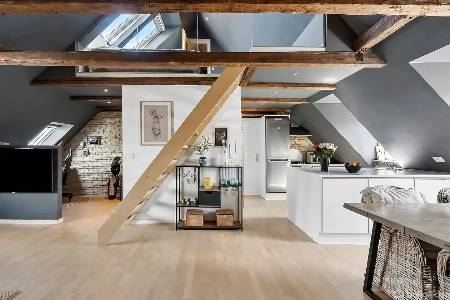 Åbent hus med tilmeldingskrav 8/2 - klik på billede - Er du på jagt efter en super fed lejlighed der er total istandsat i 2014, så kan denne bolig nu blive din! De rå vægge, de synlige loftsbjælker og det fantastiske lysindfald giver alt sammen associationer til den New Yorker lejlighed vi alle sammen har drømt om. Stilen er 100% gennemført som var det en lejlighed på Manhattan, hvor hver en kvm. skal udnyttes maximalt. Beliggenheden er optimal, man er tæt på byens centrum, men samtidig i tilpas afstand til det pulveriserende byliv. Her er masser af handlemuligheder og skøn natur ved Østre Anlæg, Østre Havn og fjorden som ligger få min. gang herfra. Lejligheden har et boligareal på 76 kvm. og er indrettet i flere plan. Lejligheden er beliggende i flot og solid gulstensejendom fra 1898 som er om-/tilbygget i 1991. Ejerforeningen består af denne ene opgang og der er styr på tingene. Lejlighed byder bl.a. på: • Vildt spændende lejlighed med et boligareal på 76 kvm. • Lejligheden er total renoveret i 2014 • Tæt ved alt og alligevel i tilpas afstand til den værste larm fra by og vej. • Særdeles godt lysindfald som kommer fra 3 karnapper og 5 ovenlysvinduer • Flot og god solid gulstensejendom • Velfungerende ejerforening som består af denne ene opgang • Lejligheden henvender sig i særdeleshed til det det yngre segment • Udlejning er tilladt ligesom det også er tilladt at holde husdyr • Skønt lukket gårdmiljø og gode kælderfaciliteter Velkommen indenfor i denne unikke lejlighed som byder på en vildt spændende indretning. Lejlighedens hjerterum er den store åbne stue som også kan rumme et stort spisebord. En lille halvmur i stuen gør at der også er blevet plads til et lille kontor. Det åbne samtale-køkken og det lækre badeværelse og også en del af den skønne hverdag man får, hvis man køber denne lejlighed. Midt i lejligheden er der en god bred trappe som fører op til soveværelset med walk-in-closet. Fra soveværelset kan man kigge ned i stuen gennem de elegante glasvægge. Samtidig med at lejligheden er top moderne er den også smadder hyggelig, indbyggede spots, flotte gulve, kontrastfarver, rå vægge og ikke mindst de synlige loftsbjælker gør denne lejlighed helt unik. Har ovenstående vakt din interesse, så kontakt os endelig for en fremvisning eller book dig på et af de mange åbne huse, så står vi klar til at betjene dig på bedste vis! Når du køber en bolig gennem EDC, har du mulighed for at få en gratis flytteforsikring. Ønsker du denne, skal du sende en mail med "Ja tak" til [email protected]