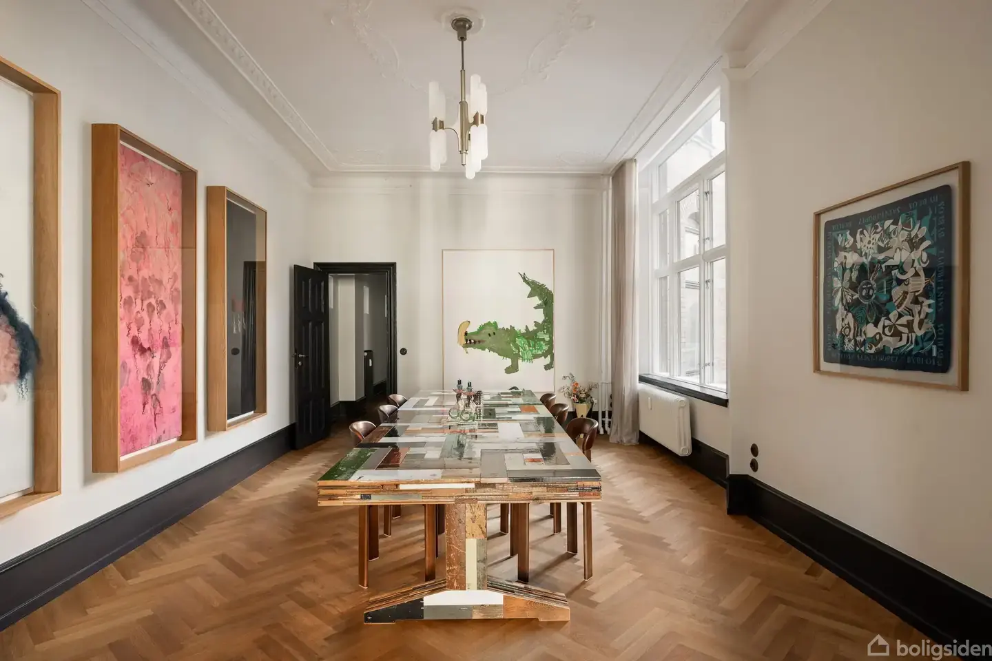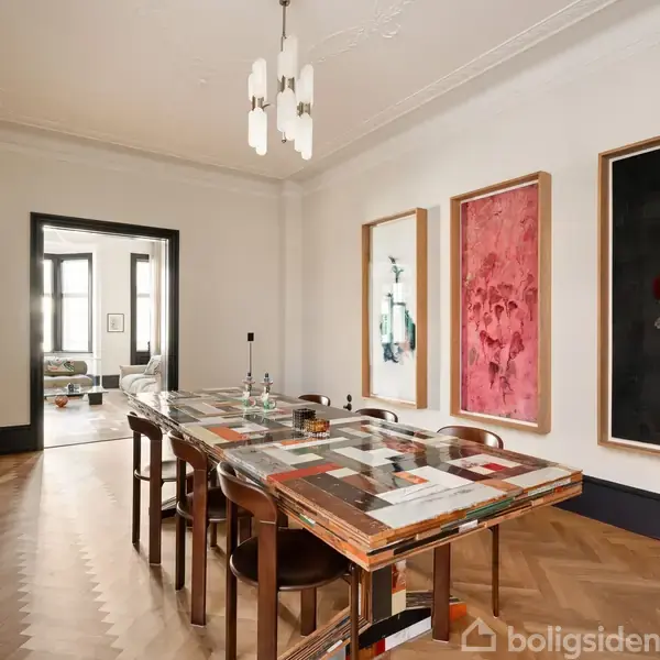 I hjertet af Østerbro ligger denne gennemrenoverede herskabslejlighed på 240 m2 med højt til loftet, smukt lysindfald, generøse og veldisponeret rum, fyldningsdøre, stuk og rosetter. Lejligheden har i sælgers ejertid været under ekstraordinær kærlig behandling og forandring med respekt for de originale detaljer og med blik for det, der gør det gode liv let. Her er speciallavede snedkerløsninger, ny el med porcelænskontakter, Farrow & Ball på vægge og paneler, tapeter fra Tapet-Cafe og gardiner fra &Drape. En bolig, der på fineste vis kombinerer fortidens æstetik med med nutidens bekvemmeligheder. Den klassiske ejendom er opført i 1909, hvor arkitekturen var præget af tidens elegante detaljer. Ejerforeningen er sund og veldrevet. Kvarteret byder på et overflødighedshorn af muligheder lige uden for de herskabelige gadedøre. Her er ingen grund til at gå på kompromis mellem et udadvendt cityliv og et bekvemmeligt hjemmeliv med plads til at være privat. Tættere kommer du ikke på at bo som i et eventyr i København.