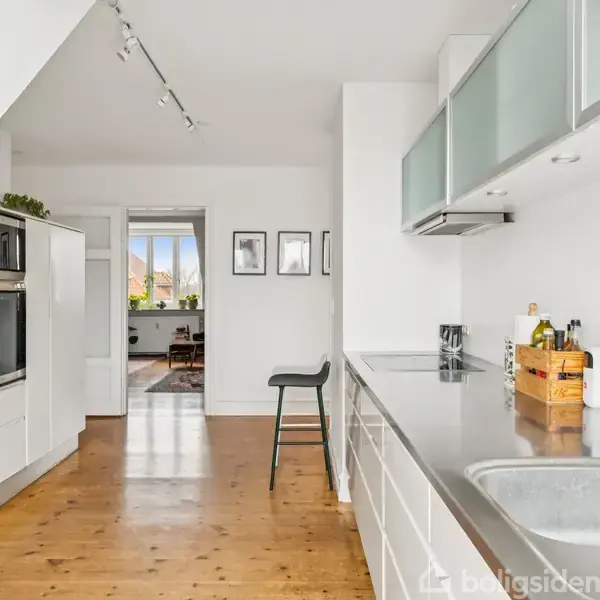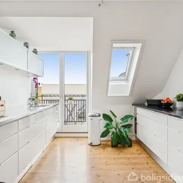 Charmerende femværelses på toppen af Indre Østerbro Vi står med nøglerne til en ret fantastisk lejlighed. Der er tale om 161 m2 og en stor solrig altan helt centralt på Østerbro og allerøverst i en smuk københavnerejendom. Perfekt til storbyfamilien. Hele fire værelser bliver det til oppe femte sal, og dertil kommer den skønne stue, det lækre køkken og det pæne badeværelse - alle er rummelige og har god plads til familien. Skråvæggene indrammer den hyggelige stemning, og tagvinduerne lukker na