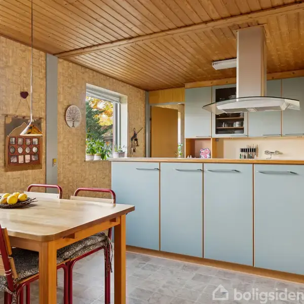 På Østerbyvej 26 finder du en rummelige villa på 136 m², hvor lys, luft og hjemlig charme går hånd i hånd. Her er der mulighed for at sætte sit eget præg. Køkkenet ligger i forbindelse med alrummet og fremstår funktionelt med god plads omkring spiseområdet. Her er der plads til både madlavning, fællesskab og gode måltider. Fra køkkenet er der udgang til et praktisk bryggers. Fra alrummet er der adgang til stuen, som er et lyst opholdsrum med trælofter, store vinduespartier og udgang til husets u