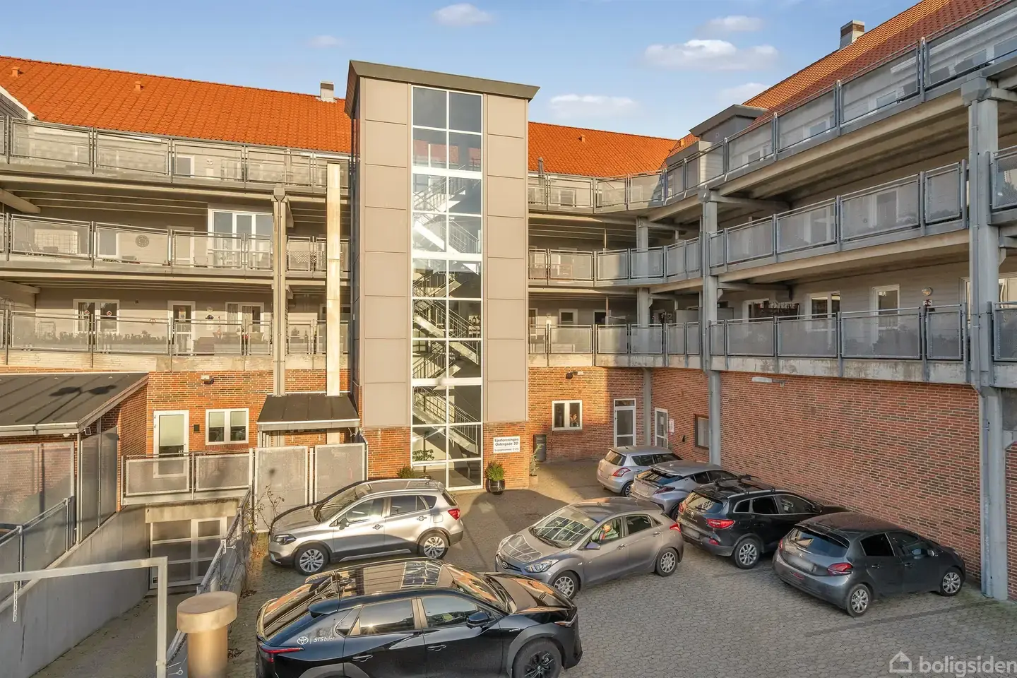 Velindrettet, lys lejlighed i hjertet af Esbjerg, lige overfor banegården og få hundrede meter fra BROEN Shopping og gågaden, finder du denne velholdte ejerlejlighed. Den ligger på 3. sal i en moderne ejendom fra 2003 med elevator og aflåst p-kælder, hvor der er mulighed for at leje en parkeringsplads til bilen. Ejendommen fremstår moderne og veldisponeret med lyse facader, brede svalegange og altaner samt et gårdmiljø med parkeringspladser. Indvendigt fremstår boligen i et rent og tidløst udtry