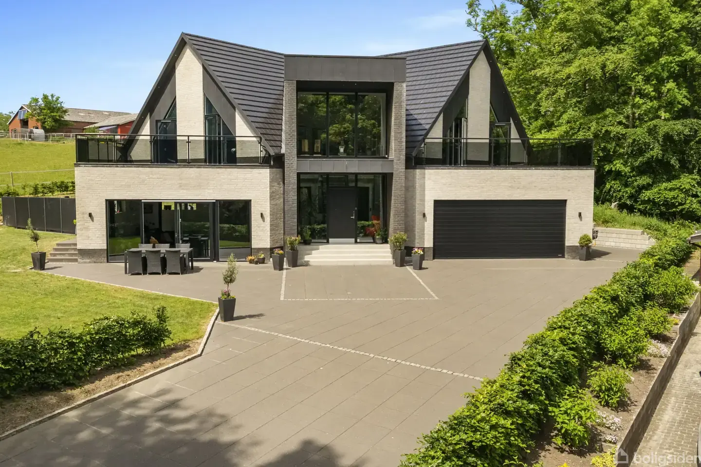 Velkommen til Østergade 21 – en unik ejendom opført i 2016, hvor kvalitet, luksus og gennemtænkte detaljer går hånd i hånd. Her får I en bolig, der på én gang ligger roligt og ugeneret, og alligevel blot en kort gåtur fra Padborgs faciliteter. En sjælden kombination, der giver jer muligheden for at være helt jer selv – uden at give afkald på nærhed og bekvemmelighed.Allerede ved ankomsten fornemmer man, at dette er noget helt særligt. Bilen kører I direkte ind i den integrerede garage med gulvva