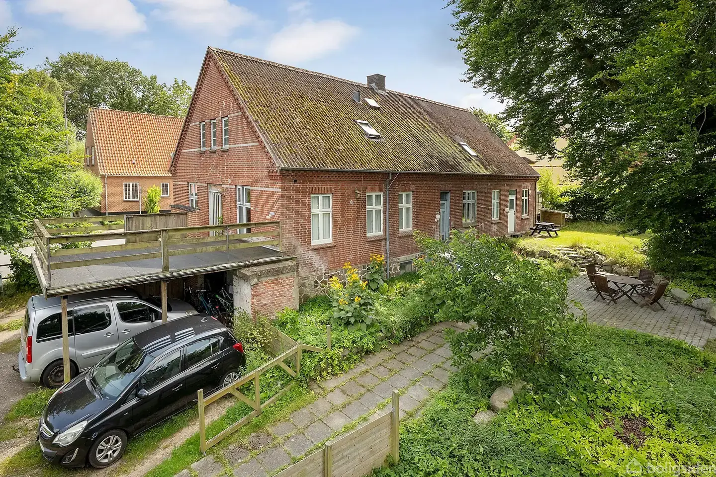 Åbent hus med tilmeldingskrav 19/2 - klik på billede - Velkommen til Østergade 23, en imponerende arkitekttegnet villa i hjertet af Kjellerup. Denne historiske ejendom strækker sig over 230 m² bolig og er beliggende på en stor, ugeneret grund på hele 1326 m². Her får du mulighed for at bo i en bolig, hvor historiens vingesus kan føles både udvendigt med de smukke detaljer i murværket og indvendigt med de højloftede stuer. Indenfor byder stueplan på to herskabelige stuer med smukke stuklofter, der skaber en historisk atmosfære. En entre med vaskefaciliteter og et stort køkken, flere værelser og udgang til en stor havestue der giver mulighed for at nyde naturen året rundt. I stueplan forefindes også en separat boligdel indeholdende et stort værelse, the-køkken og eget badeværelse. Den majestætiske hall med sin storslåede trappe fører dig til første sal, hvor du finder et regulært køkken, badeværelse, tre værelser og samt en stue, der indbyder til hygge og samvær. Denne ejendom er ideel for den store børnefamilie, der drømmer om et hjem med plads til leg og liv. Samtidig åbner den op for muligheder som flerfamiliebolig, eller som et spændende investeringsprojekt for entreprenører, der ønsker at udvikle grunden. Med sin centrale beliggenhed og unikke karakter er Østergade 23 en perle, der venter på at blive udforsket. Gå ikke glip af chancen for at skabe dit drømmehjem i denne fantastiske ejendom!