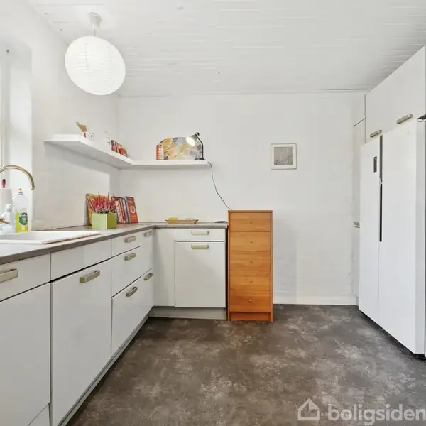 Stilfuld villa nær byens faciliteter Denne rummelige og indbydende villa fra 1958 byder på 172 veludnyttede kvadratmeter samt en fuld kælder med integreret garage. Her får I en bolig med en flot, klassisk stil, som er ideel til jer, der ønsker god plads, lyse rum og en beliggenhed midt i byen – med skole, børnehave og indkøb lige om hjørnet. Velkommen til.Boligens stueplan rummer et stort og lyst opholdsareal, hvor der fra det rummelige køkken med kogeø er en naturlig overgang til den hyggelige