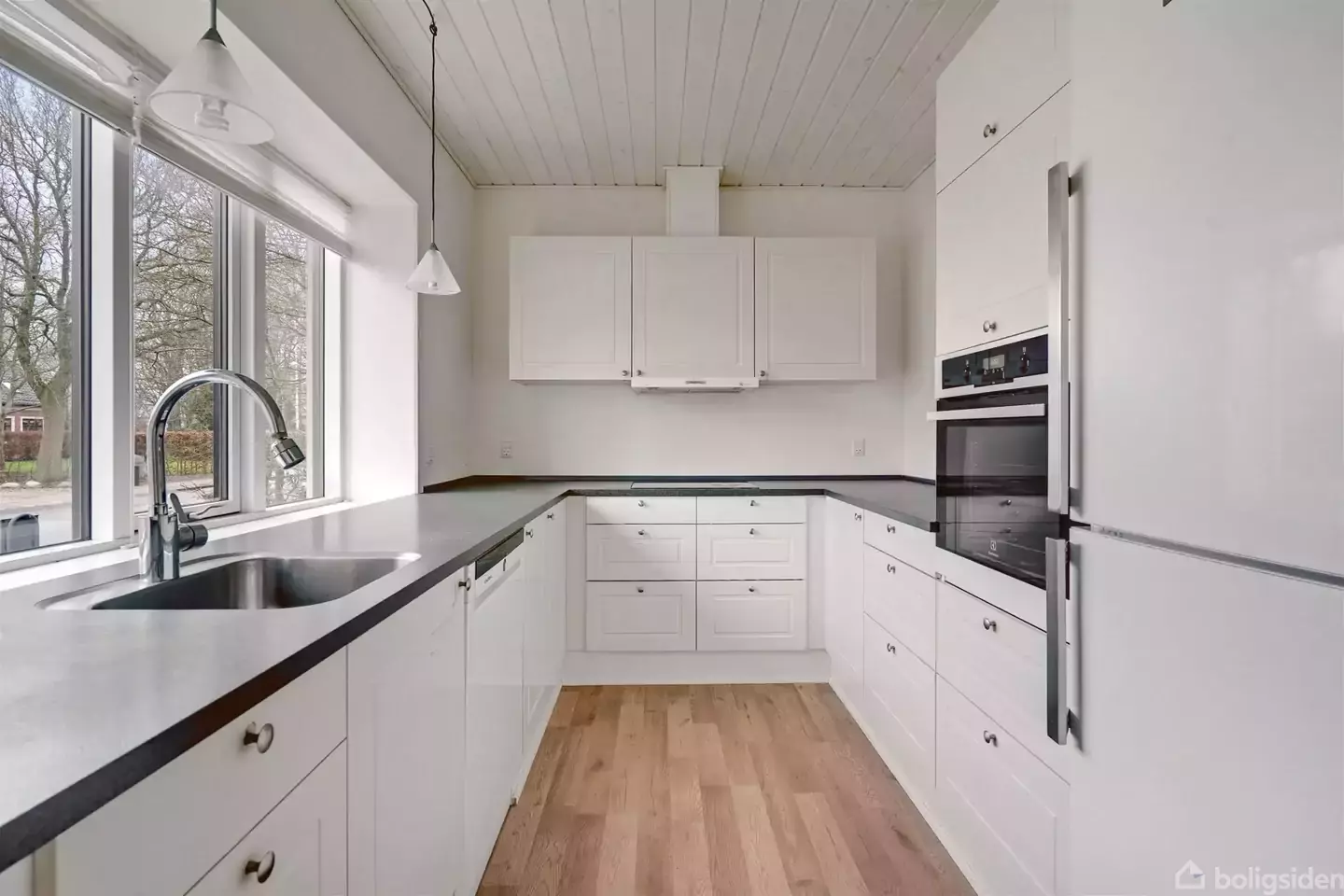 Åbent hus med tilmeldingskrav 5/2 - klik på billede - Velkommen til denne hyggelige murermestervilla fra 1947, som nu kan blive jeres nye hjem. Huset, som er fuldstændig indflytningsklart, har gennemgået en totalrenovering i 2016 og byder på en velfungerende planløsning med gode opholdsrum og en kælder, der nemt kan gøres til et stort aktiv. Hertil kommer en central placering i Oksbøl, hvor I har alt, hvad I skal bruge i hverdagen inden for kort afstand. Villaen fremtræder flot med sin klassiske arkitektur, nydelige pudsede facade og glaseret tegltag. Indenfor er der en lys og indbydende atmosfære, der både skyldes lysindfaldet, som i stuerne er gennemgående, men i lige så høj grad de hvidmalede vægge og lofter. Her er også charme i metermål takket være fritliggende spær på første sal og fyldningsdøre. I bliver I budt velkommen i en lys entré, hvorfra I har adgang til stuerne samt et gæstetoilet og et værelse. Herfra er der også adgang til førstesalen, som for nuværende byder på et stort soveværelse med altan, et værelse og et badeværelse. I det store soveværelse er der lavet walk-in closet, så det egner sig perfekt som master bedroom. Man kunne dog også sagtens forestille sig en løsning, hvor man etablerede et ekstra værelse, hvis behovet opstod. Opholdsrummene i stueplan består af de to førnævnte stuer samt et pænt køkken. I kælderen er der mulighed for opbevaring, hobbyrum eller lignende. Kælderen har også et vaskerum med god plads til også at hænge tøjet til tørre. Udendørs kan I nyde sommeren i en overskuelig have, som er nem at holde. Slap af på den solrige, hævede træterrasse, som ligger afskærmet af huset, så ingen kan kigge ind - heller ikke vinden. Her er også gode parkeringsforhold hvis du har flere biler. En charmerende, lys murermestervilla med en god planløsning og en nem, solrig have er med andre ord, hvad I kan forvente af Østergade 36 - kontakt os for en fremvisning!