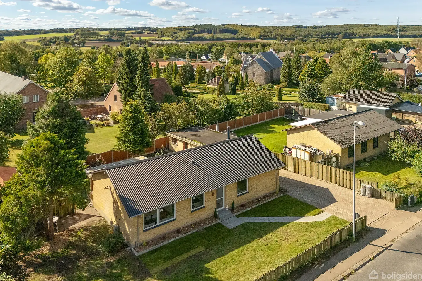På Østergade 38 i hyggelige Laurbjerg finder du denne velholdte og indbydende villa i ét plan, som løbende er blevet moderniseret med sans for både kvalitet og funktionalitet. Boligen fremstår indflytningsklar og kombinerer moderne løsninger med en planløsning, der tilgodeser både familieliv og hverdagens praktiske behov.Allerede ved ankomsten mødes du af en nyanlagt flisebelægning i både indkørsel og have, hvilket giver et stilrent førstehåndsindtryk og samtidig gør vedligeholdelsen let. Fra de