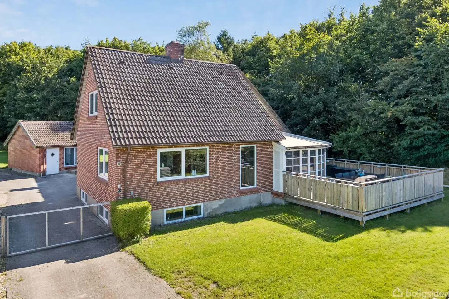 Stor familievilla med plads til hverdagsliv og store drømme! 241 m² bolig med en stor grund ud til skoven og masser af muligheder Velkommen til Østergade 57 – en villa, hvor der er plads til hele familien, både inde og ude. Her får I et hjem, der kombinerer rummelighed og funktionalitet. Med hele 241 m² bolig, 64 m² kælder og en stor grund på 1.569 m² med direkte adgang til skov, er dette en bolig, der giver jer plads til både hverdagsliv og store drømme. Velkommen indenfor – plads, lys og masser af muligheder Allerede i den store entré mærker man husets sjæl. Her er klinkegulv og masser af skabsplads, der gør hverdagen nem. Fra entréen kan man fortsætte direkte ind i hjemmet eller tage trappen til første sal. Fra gangen er der adgang til husets første badeværelse, som er rummeligt og velindrettet med lyse klinker, god opbevaringsplads og en funktionel bruseniche – perfekt til familiens travle morgener. Køkken-alrummet er boligens hjerte. Her er et funktionelt U-køkken med rigelig skabsplads og en oplagt spiseplads til hele familien. Rummet har en naturlig forbindelse til vinter-udestuen på 20 m², hvor loft til kip, gulvvarme og store vinduespartier skaber en lys og varm atmosfære året rundt. Her kan I indrette jer med juletræ til højtiderne, hobbyområde eller hyggelige middage med vennerne – kun fantasien sætter grænser. Fra udestuen er der udgang til en hævet træterrasse, der forlænger sommeren og giver perfekte rammer til grillaftener og afslappede stunder. Den tilstødende vinkelstue imponerer med sit lysindfald, trægulv og plads til både sofa- og spiseafdeling. En elegant spindeltrappe binder etagerne sammen og leder jer videre til førstesalen. Førstesalen – familieliv på højt niveau Her venter hele fire værelser i gode størrelser, hvor et af dem har udgang til en overdækket altan med udsigt over haven og skoven. Hertil kommer et badeværelse med både bruseniche, badekar og masser af skabsplads – samt et lille tekøkken, som gør etagen perfekt til store børn, gæster eller muligheden for at udleje. Kælderen – praktisk, rummelig og med egen indgang Kælderen på 64 m² har sin egen indgang, hvilket åbner for endnu flere anvendelsesmuligheder. I dag fungerer den som vaskekælder med masser af plads til opbevaring, men her er rig mulighed for at skabe hobbyrum eller værksted – alt efter familiens behov. Udhuse, værksted og plads til det hele Boligen rummer en 33 m² garage, der i dag er indrettet som et luksuriøst værksted – men som nemt kan laves tilbage til garage. Hertil kommer et ekstra udhus på 30 m², hvor det kun er fantasien, der afgør, om det skal bruges som atelier, træningslokale, festlokale eller noget helt fjerde. Her er kort sagt plads til både hverdagens behov og jeres kreative idéer. Haven – et grønt frirum ud til skoven Den 1.569 m² store grund er et paradis for både børn og voksne. Haven er primært anlagt med græs, så den er nem at holde, men samtidig fuld af muligheder. Der er plads til boldspil, køkkenhave eller en trampolin – og når børnene vil på eventyr, kan de smutte direkte ind i skoven og bygge huler. For de voksne er den hævede terrasse et oplagt samlingspunkt, mens haven i sig selv indbyder til ro og udeliv i grønne rammer. Området – alt det, der gør hverdagen lettere I Vorbasse får I en hverdag, der fungerer. Skolen ligger kun 550 meter væk, børnehaven ca. 1 km, og byen byder på indkøb, svømmehal, idræt, kro, lægehus og naturligvis det traditionsrige Vorbasse Marked. Samtidig er naturen lige om hjørnet med Frederikshåb Plantage, Syvårssøerne og Hærvejen. Placeringen gør også hverdagen nem for pendleren: 15 minutter til Billund og ca. 30 minutter til Vejle og Kolding. Her bor man midt i et stærkt lokalsamfund, omgivet af natur – uden at gå på kompromis med byens faciliteter. Klar til at opleve det selv? Østergade 57 er ikke bare et hus – det er et hjem fyldt med muligheder, plads og en beliggenhed, der er svær at slå. Kontakt os allerede i dag – vi glæder os til at vise dig dit måske kommende hjem, hvor du helt sikkert vil BoGodt!