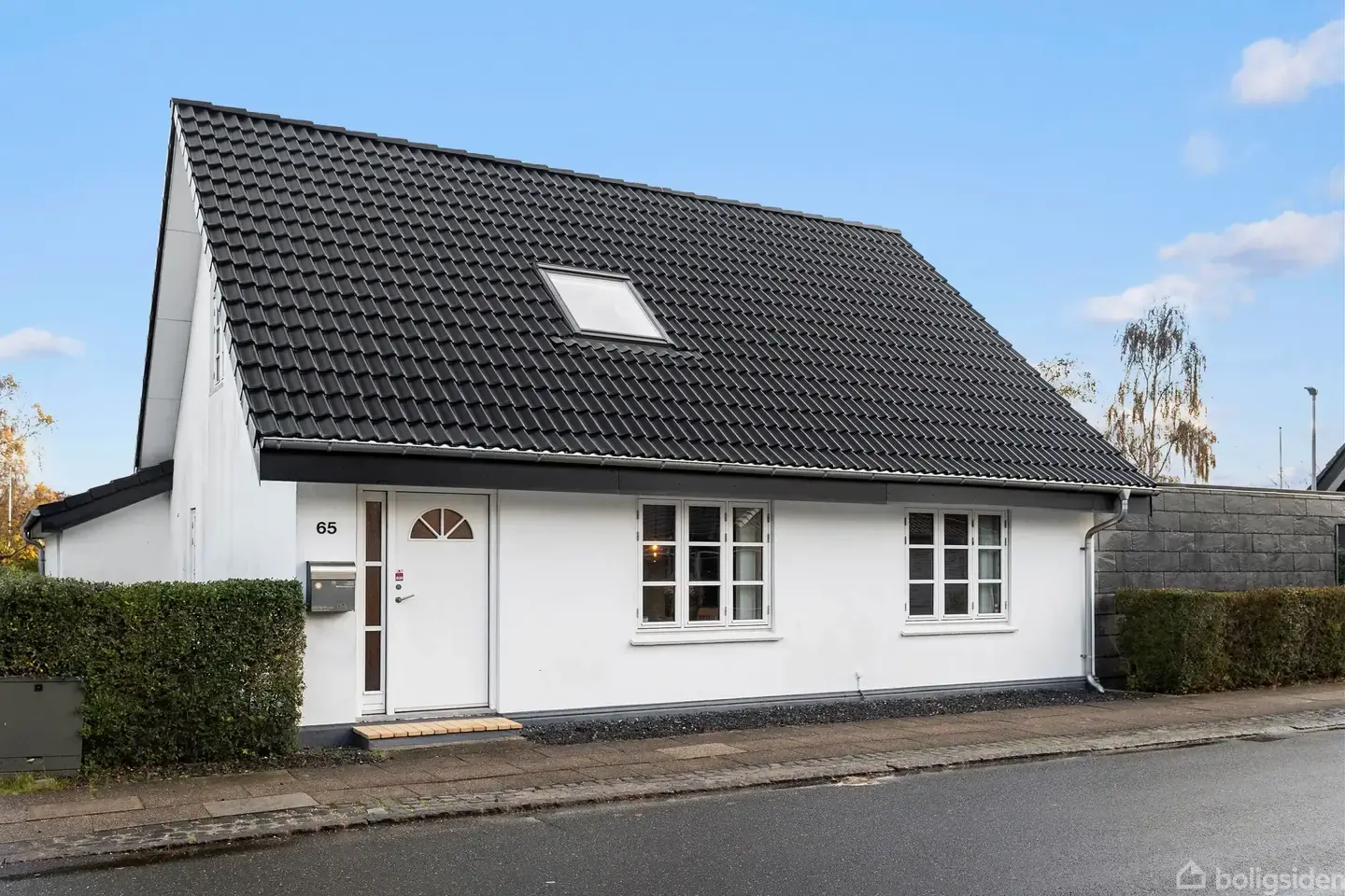 Åbent hus med tilmeldingskrav 11/2 - klik på billede - Velkommen til Østergade 65, et pænt og velholdt byhus med tag fra 2022, der kombinerer stilfuld, tidløs indretning med praktiske løsninger. Der er ligeledes gulvvarme i hele underetagen. Huset er lyst, rummeligt og velordnet med et stort, pænt køkken - perfekt til både madlavning og hyggelige måltider - bryggers/entre, stort badeværelse og en hyggelig stue med spiseplads. Førstesalen rummer et lille repos, et stort soveværelse og et ekstra værelse, fleksibelt til børneværelse, gæsteværelse eller hjemmekontor. Heroppe er der mulighed for at bygge ud og omdanne loftsrummet til endnu et værelse samt der er anlæg til et ekstra toilet. Haven er privat, overskuelig og nem at holde, og carporten har god plads til bil og opbevaring. Beliggenheden er central med kort afstand til skole, børnehave og indkøb. Vamdrup tilbyder gode offentlige transportmuligheder, biograf, svømmehal, idrætsfaciliteter og naturskønne omgivelser - ideelt for både små familier og voksne, der ønsker et pænt, funktionelt hjem tæt på byens liv.
