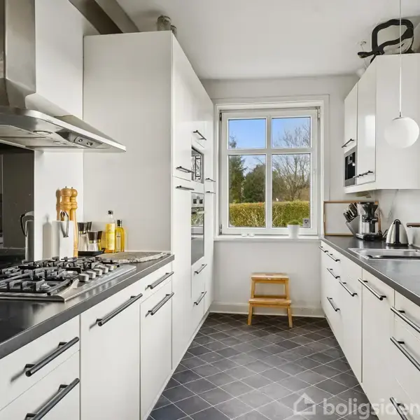 Villa fra 1927 med 162 m² bolig på 690 m² grund i rolige omgivelser med nem adgang til byens faciliteter. Ejendommen har seks værelser, heraf fire soveværelser, to lyse stuer med store vinduer, funktionelt køkken med sorte bordplader og hvide skabe samt bryggers til vask og opbevaring. Et badeværelse med mørke klinker og naturligt lys. Kontor med dagslys til hjemmearbejde. Stor garage og værksted på næsten 50 m² til parkering eller hobby. Kælder på cirka 10 m² til opbevaring. Stor, velholdt have