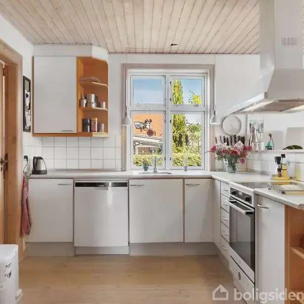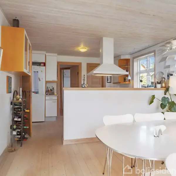Åbent hus med tilmeldingskrav 2/2 - klik på billede - Udsigt til havn og fjord – stemningsfuld bolig i hjertet af Hals Velkommen til denne unikke ejendom midt i charmerende Hals. Her får du 177 veludnyttede kvadratmeter fordelt over to plan, skønne uderum og ikke mindst en imponerende altan med udsigt over både havnen og Limfjorden. Indenfor byder stueetagen på en funktionel planløsning med entré, bryggers og et af boligens to badeværelser.Derudover finder du også det åbne køkken-alrum, som er i direkte forbindelse med spisestuen. Herfra åbner franske døre op til en lys og indbydende stue med udsigt til haven. I stueplan findes også to af boligens tre værelser – ideelle som f.eks. børneværelser, kontor eller gæsteværelse. På første sal venter endnu en stue – og her løfter boligen sig til noget helt særligt. Rummet har loft til kip, synlige bjælker og en skøn brændeovn, der skaber både varme og atmosfære. Herfra er der direkte udgang til altanen, hvor du har udsigt over havnen og Limfjordens blå horisont. Et perfekt sted til morgenkaffen eller aftenhygge. På førstesalen møder du også boligens tredje værelse – et lyst og rummeligt rum, som ligger i forbindelse med endnu et badeværelse og et praktisk walk-in-closet med rigelig opbevaringsplads. Udendørs får du en overskuelig og charmerende have, der emmer af hygge og privatliv. Her er både terrasse mod syd og øst – ideel til udeliv og solrige dage – og med markise får du mulighed for skygge, når sommeren viser sig fra sin bedste side. Altanen ovenpå tilføjer en ekstra dimension til udemiljøet og binder hjemmet flot sammen med omgivelserne. Ejendommen ligger helt centralt i Hals – en hyggelig og levende havneby med et stærkt lokalt fællesskab. Her finder du både skole til 9. klasse, en aktiv idrætsforening med motionscenter, en flot 18-hullers golfbane og grønne områder som Skansen – byens smukke åndehul lige ved fjordbredden. Hals tiltrækker både helårsbeboere og sommergæster og byder på et miljø, hvor trivsel og nærhed er i fokus året rundt.