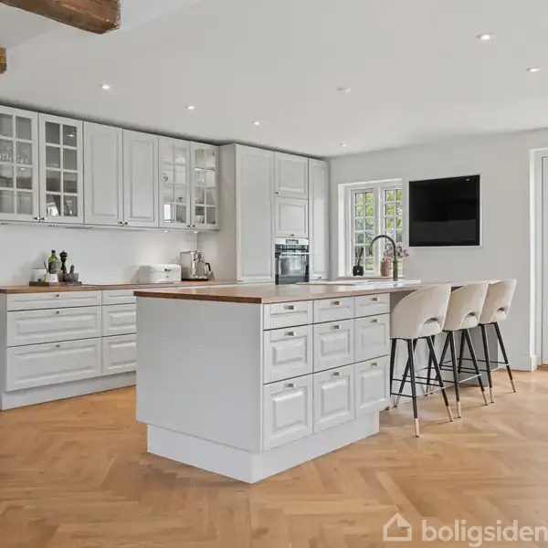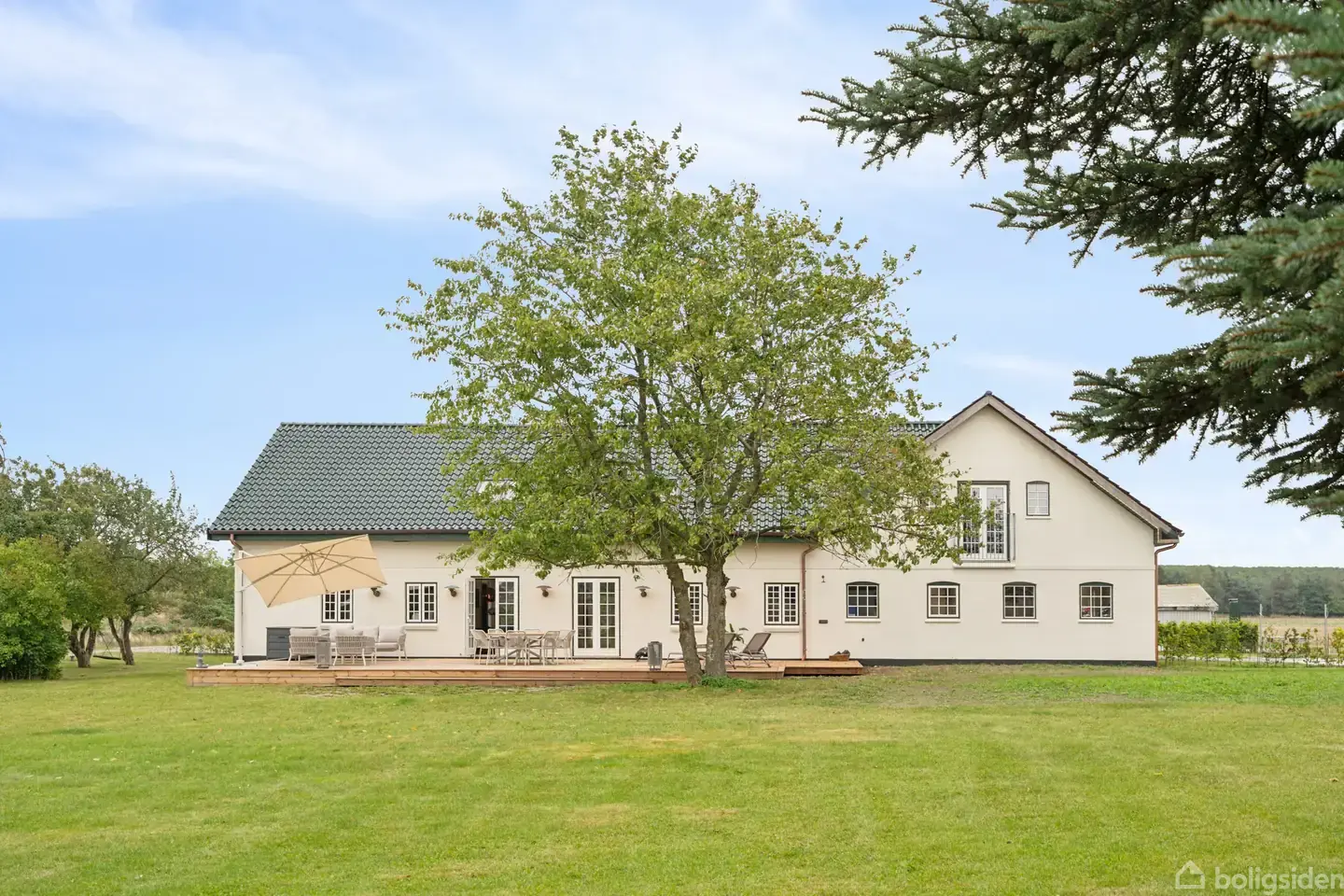 Et hjem på landet med kompromisløs kvalitet Omgivet af marker lige vest for Lille Skensved ligger en sjælden juvel af en ejendom. På knap 10 hektar i ugenerede og fuldkommen fredelige omgivelser møder I den: En yderst elegant og meget stor villa fra 1933, der efter en omfattende renovering i 2020-2025 har fået helt nyt liv. Hvert rum, hver flade og hver detalje bærer præg af omhu, hvor historien møder det moderne med lethed. Her venter 250 kvadratmeter bolig på en anseelig grund, hvor marker, e