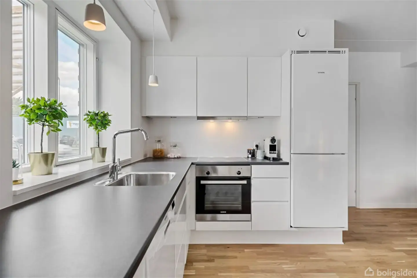 Østerlunden er drømmeboligen for dig, der søger en lys lejlighed i funktionelt og tidløst design. Alt sammen udført i lyse, nordiske materialer med smukke trægulve og store vinduespartier, der giver masser af lys i lejligheden. Denne fine 4 værelses lejlighed byder på en gennemtænkt planløsning med entre, to gode værelser samt et soveværelse, med masser af skabsplads, stort badeværelse, med vaskesøjle, og et lækkert køkkenalrum, med det store vinduesparti ud mod altanen. Hele lejligheden bliver opvarmet af gulvvarme. Fra den skønne altan kan du nyde solen og udsigten til de grønne haverum. I de grønne haverum finder du legepladser, og derudover byder området også på parkering samt overdækket cykelparkering. Indenfor kort afstand har du adgang til hverdagens praktiske gøremål. Du har desuden dørtelefon i lejligheden, så du har helt styr på, hvem du lukker ind. Til ejendommen hører naturligvis også elevator, så du kan klare de daglige indkøb uden at få sved på panden. Østerlunden gør det kort sagt nemt at få en harmonisk hverdag – både for familier og singler.