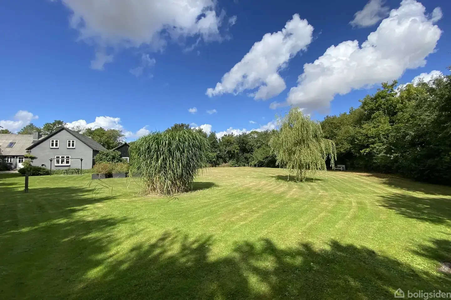 Mange kvadratmeter, gode udbygninger og en skøn, ugeneret have. Så drømmer I om plads og mange muligheder, så er det hele til stede her i en indflytningsklar ejendom.Boligdelen byder på hele 181 m² fordelt på to plan, så her er god plads til både familieliv og gæster. Stueplan indeholder en lys og rummelig entré, en stor og indbydende stue med hyggelig brændeovn samt udgang til den solrige terrasse og have. Køkkenet blev moderniseret i 2021 og fremstår lyst og funktionelt Herudover findes et væ