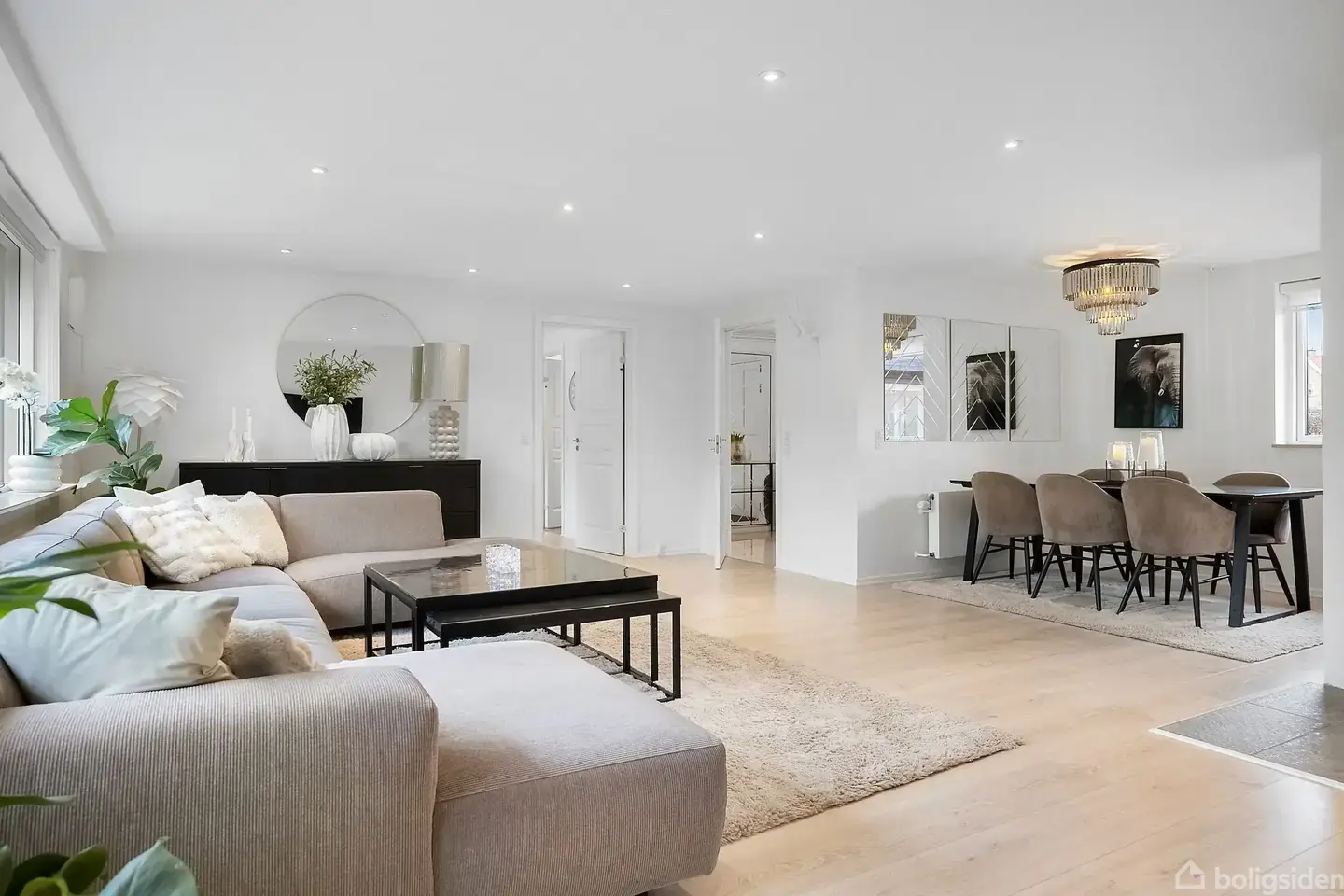 Gennemført villa til den kvalitetsbevidste køber Det er næsten ikke til at tro, at denne villa er opført i 1977. Den omfattende renovering i 2023 har nemlig forvandlet boligen til et moderne og indflytningsklart hjem med et stilrent udtryk og gennemtænkte detaljer. Indenfor venter hele fire værelser, to badeværelser med gulvvarme, et lyst og åbent opholdsmiljø samt en stor udestue, der forlænger sæsonen og skaber en flydende overgang mellem inde og ude. Indbydende og funktionel planløsning Entréen byder velkommen med et lyst og moderne udtryk og leder direkte ind til den rummelige stue. Her strømmer lyset ind gennem de store vinduespartier, der samtidig giver en skøn udsigt til haven. Stuen ligger i åben forbindelse med det stilfulde køkken – et oplagt samlingspunkt for hele familien. Fra stuen er der desuden adgang til den imponerende udestue, hvor I kan nyde haven året rundt. Villaen rummer fire gode værelser, hvilket giver mange muligheder for indretning – uanset om behovet er tre børneværelser, et kontor eller måske et kreativt hobbyrum. Forældresoveværelset har eget badeværelse, mens det andet badeværelse er praktisk placeret i forbindelse med bryggerset. Privat have og god plads til hverdagen Udenfor venter en ugeneret og velanlagt have med frodige bede og masser af sol. Her er rig mulighed for afslapning, leg og hyggelige stunder på terrassen. Dertil kommer en garage på 24 m², som giver både ekstra opbevaringsplads og mulighed for parkering. Attraktiv beliggenhed i Glostrup Beliggenheden er i top – her bor I i et stille og etableret kvarter med kort afstand til alt det, der gør hverdagen nemmere. I gåafstand finder I flere dagligvarebutikker, pasningstilbud og Glostrup Shoppingcenter med både butikker, spisesteder og apotek. Der er ligeledes nem adgang til offentlig transport, herunder regionaltog og S-tog, samt Glostrup Skole. Kort sagt: En indflytningsklar og stilfuldt renoveret villa med en praktisk planløsning, flot have og super beliggenhed tæt på alle hverdagens fornødenheder.