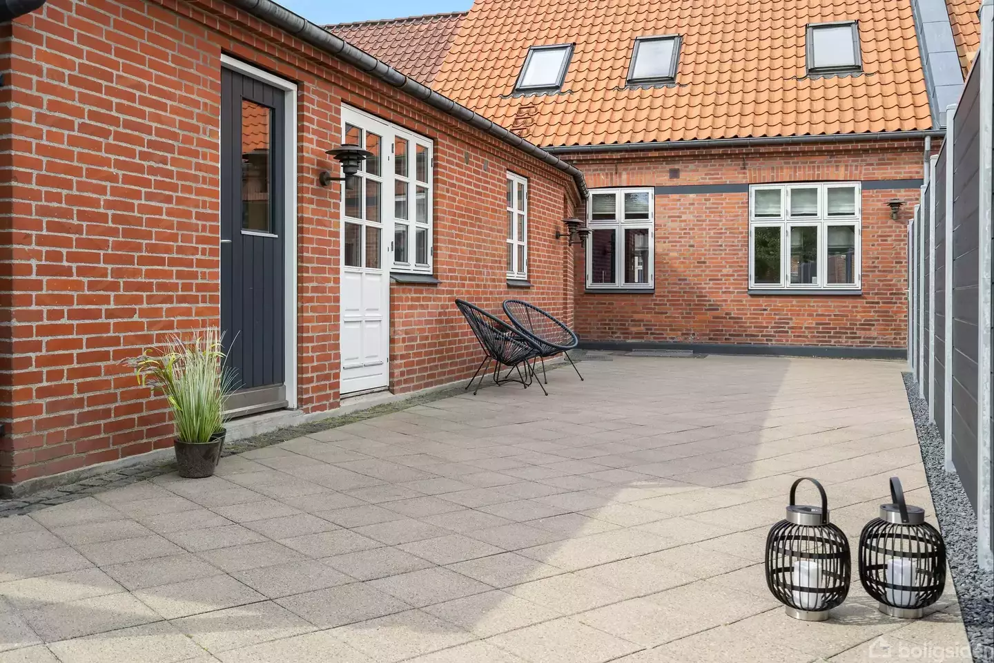 Åbent hus med tilmeldingskrav 3/2 - klik på billede - Byhuset her på Østervold 10 er særdeles velholdt og velindrettet. Ud over det løbende vedligehold er der også foretaget forskellige opgraderinger gennem årene, og de er foretaget i en stil, som passer rigtig godt til et charmerende byhus som dette, der har mere end 100 år på bagen. Udvendigt er det eksempelvis dannebrogsvinduerne og de profilerede døre, der er med til at give rødstensejendommen det helt rette udtryk. Og indenfor er fyldningsdørene mellem rummene og fyldningslågerne i køkkenet med til at understrege denne hyggelige stil. Der er hele 163 m2 bolig fordelt på halvandet plan at gøre godt med. I stueplan får du en entré og en stue ud med gaden. Stuen ligger i et åbent rumforløb med en spisestue og med køkkenet. Fra køkkenet er der adgang til en gang og til bagindgangen, hvor der er masser af opbevaringsplads og mulighed for at have vaskefaciliteter. Herfra er der forbindelse til et badeværelse og til et bryggers. Endelig ligger der i enden af denne udhuslænge et værelse, som har egen udgang til gårdhaven. På første sal finder du endnu et badeværelse. Heroppe er der tillige en repos af en god størrelse samt tre værelser. Med et grundareal på 257 m2 siger det sig selv at haven ikke er enorm. Det gør den dejligt let at holde. Og pasningsopgaven bliver endnu lettere at overskue, idet baghaven er anlagt som en gårdhave med flisebelægning over det hele. Her skal du blot stille havemøblerne og måske lidt krukker ud, og så kan du nyde masser af skønne udestunder på din dejlige terrasse