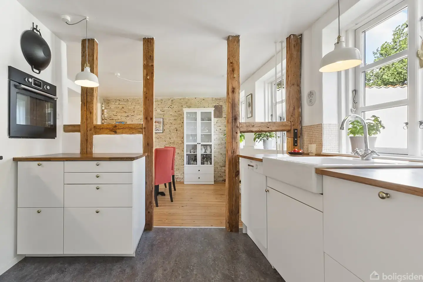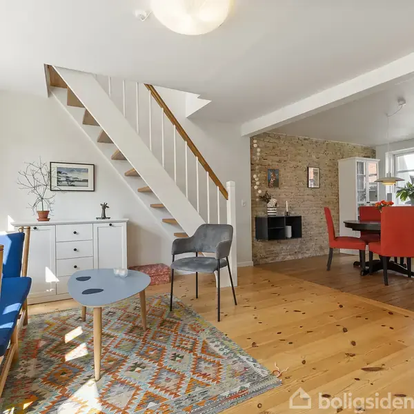 I hjertet af charmerende Nyborg ligger dette indbydende rækkehus, som emmer af sjæl og personlighed. Boligen strækker sig over 82 veludnyttede kvadratmeter og henvender sig perfekt til førstegangskøbere eller jer, der søger mindre og mere overskuelige rammer, uden at gå på kompromis med atmosfære og kvalitet. Allerede ved ankomst fornemmer man husets unikke udtryk, hvor sprossede vinduer, synlige bjælker og et smukt trægulv i alrummet sætter scenen for et hjem med karakter. Stueplanen byder på