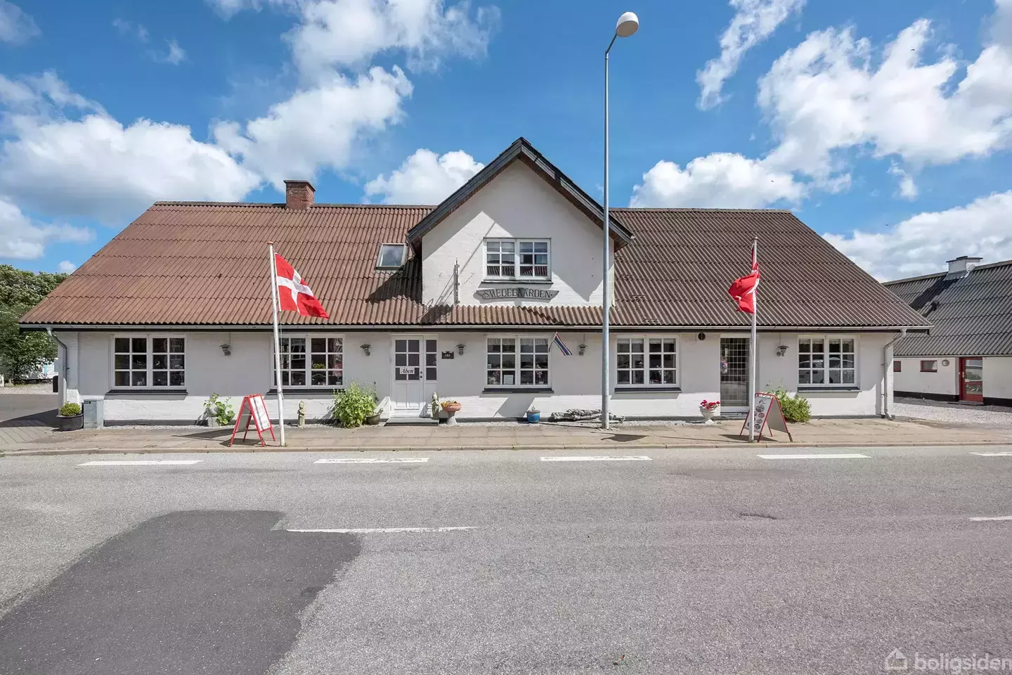 Denne charmerende ejendom, beliggende midt i Lyngså by, er byens gamle købmandsgård. Den 1916 m² store grund tilbyder en betagende udsigt over markerne mod øst, og man kan endda skimte vandet ved Lyngså Strand fra de private gemakker.Ejendommen består af en imponerende bygning langs Hovedgaden, som omfatter 316 m² erhvervsareal. Her finder man en smuk hall med lyse rustikke gulvfliser, der fortsætter ind i de tre pæne toiletter. Fra hallen er der adgang til to restaurationslokaler - det ene lidt