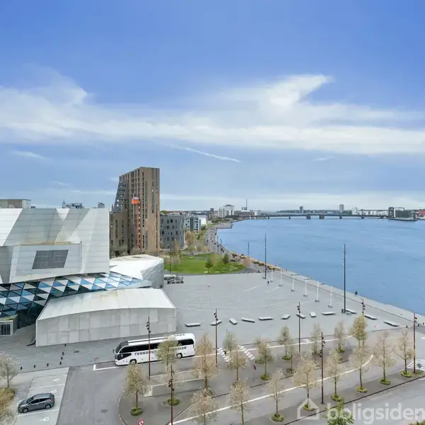 Eksklusiv lejlighed med to altaner, egen p-plads og panoramaudsigt over Limfjorden i AalborgPå Østre Havnegade 55, 7. tv. i Aalborg venter en moderne og eksklusiv 3-værelses lejlighed, hvor kvalitet og komfort er i fokus, og hvor beliggenheden gør hverdagen til noget særligt. Fra lejligheden får du en bemærkelsesværdig udsigt over Limfjordens blå vidder, spektakulære solnedgange og byens dynamiske liv, hvor fjordens ro skaber kontrast til det pulserende miljø. Allerede ved ankomsten mærker du, a