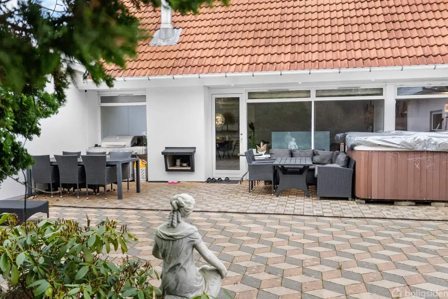 På Østre Strandvej 3 får du en bolig, der kombinerer en attraktiv strandsidebeliggenhed med masser af plads og fleksibilitet. Her er der virkelig mulighed for at skabe et hjem, der tilpasser sig dine behov – hvad enten du drømmer om gode familieforhold, en separat enhed til gæster eller et hjem, der også rummer erhverv.Hovedhuset fremstår pænt og moderne med et rødt tegltag fra 2001 og en veldisponeret planløsning, hvor lyse og rummelige opholdsrum danner den perfekte ramme om hverdagen. Den sto