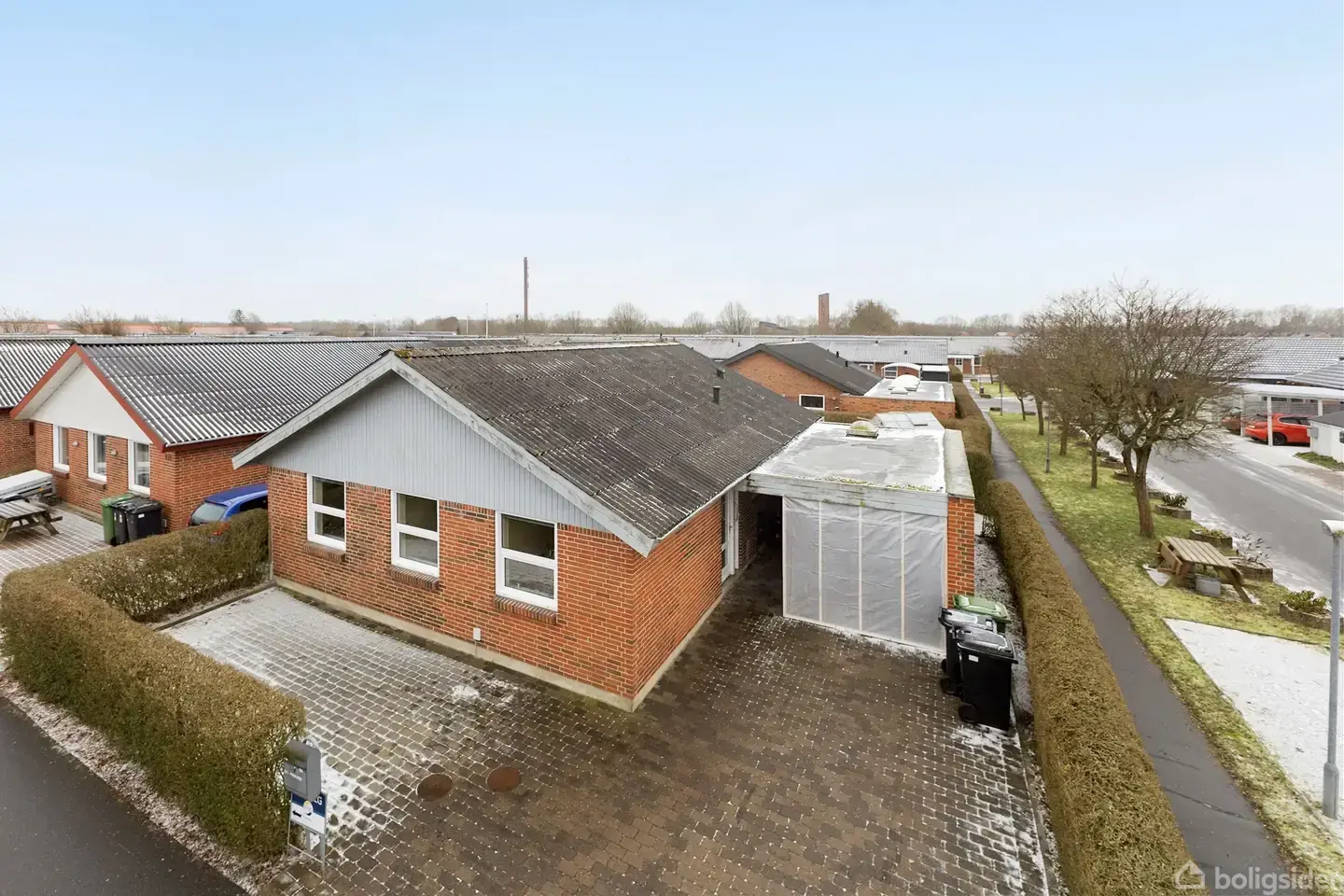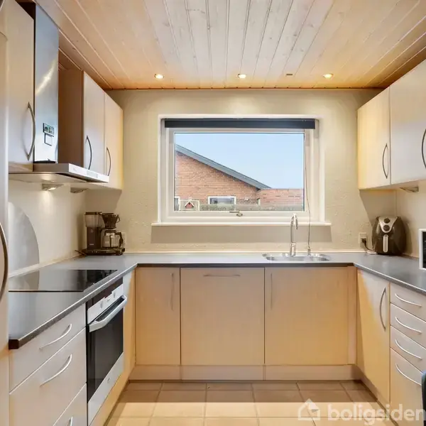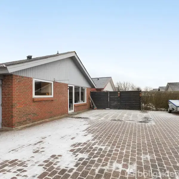 Her får du et solidt og velindrettet rækkehus på 100 m², hvor tingene er gjort, som de altid er blevet gjort: ordentligt, praktisk og med fokus på hverdagen. Planløsningen er enkel og velfungerende med to gode værelser samt et regulært soveværelse – ideelt til både børnefamilien, parret eller dem, der ønsker et ekstra kontor eller hobbyrum. Boligens hjerte er køkkenet med spiseplads, hvor morgenkaffen får lov at dampe, og dagens planer kan lægges i ro og mag. Herfra er der naturlig forbindelse til den hyggelige stue med plads til både spisebord og sofagruppe. Et rum, der inviterer til fællesskab, gæster og rolige aftener. Badeværelset er udstyret med gulvvarme – en lille luksus, man hurtigt vænner sig til. Fra entreén kan man vælge at gå til husets bryggers og derigennem til køkkenet eller husets gæster kan meget praktisk ledes direkte til den hyggelige stue. Huset fremstår med hvide plastvinduer fra midten af 1990’erne, som giver et klassisk udtryk og minimal vedligeholdelse. Udenfor er der god plads til parkering både foran huset og i carporten. I forlængelse heraf findes et praktisk redskabsrum til cykler, haveredskaber og alt det, man gerne vil have tæt på – men ikke indenfor. Baghaven er stenbelagt og anlagt som en lukket gårdhave med sydvendt orientering. Her er der sol det meste af dagen og rammerne for grill, krukker og sommerliv uden det store havearbejde. Kort sagt: Et rækkehus for dem, der sætter pris på trygge rammer, fornuftig indretning og en bolig, der bare fungerer.