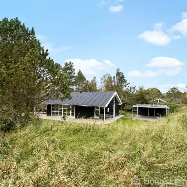 Åbent hus med tilmeldingskrav 2/2 - klik på billede - Velkommen til dette skønne sommerhus på Oksevej 26 i naturskønne Bunken, 9982 Ålbæk. Her får du et moderne og velholdt sommerhus fra 2006 med et boligareal på 107 m², som byder på en lys og åben atmosfære med loft til kip og store vinduespartier, der lukker naturen helt ind. Huset er ideelt for familien, der søger et sted med plads til hygge og afslapning, samtidig med at moderne komfort er i højsædet. Sommerhuset har en stilfuld og funktionel planløsning, som giver masser af rum til samvær. Det åbne køkken/alrum og stue udgør hjertet i boligen, hvor der er en indbygget pejs og direkte udgang til de nye terrasser. Her kan du nyde sommeren med masser af sol og hyggelige stunder udendørs. Der er både åbne og overdækkede terrassearealer, så du kan finde læ uanset vejret. Grunden er på hele 1256 m² og byder på masser af plads til at udfolde sig i de naturskønne omgivelser. Boligen rummer 2 gode soveværelser samt en hems, hvilket gør huset perfekt til både familier og gæster. Det store badeværelse er udstyret med en nedsænket hjørne badekar, hvor du kan koble af og nyde livet. Huset har desuden et 6kw solcelleanlæg på carportens tag, med en tilhørende 14kw batteripakke og en lader til elbil. Dette betyder lavt elforbrug og mulighed for at oplade en elbil direkte fra ejendommen. Sommerhuset ligger midt i det idylliske Bunken Klitplantage, som indbyder til skønne gåture og naturoplevelser. Fra huset er der kort afstand til den imponerende Råbjerg Mile, hvor du kan opleve Danmarks vandrende klitlandskab. Derudover er der kun en kort tur til lækre badestrande både ved Bunken og Skiveren, som er perfekte til sommerens strandture. Hvis du er til golf, ligger en af områdets golfbaner også i nærheden. Beliggenheden er også perfekt for dem, der ønsker nem adgang til både Ålbæk og Skagen. Du kan tage toget fra trinbrættet i Bunken, cykle ad de naturskønne cykelstier, eller tage en kort køretur til de hyggelige byer, som byder på charmerende havnemiljøer, gode spisesteder og indkøbsmuligheder. Dette sommerhus er det oplagte valg, hvis du drømmer om en feriebolig med ro, komfort og naturskønne omgivelser tæt på både hav og byliv.