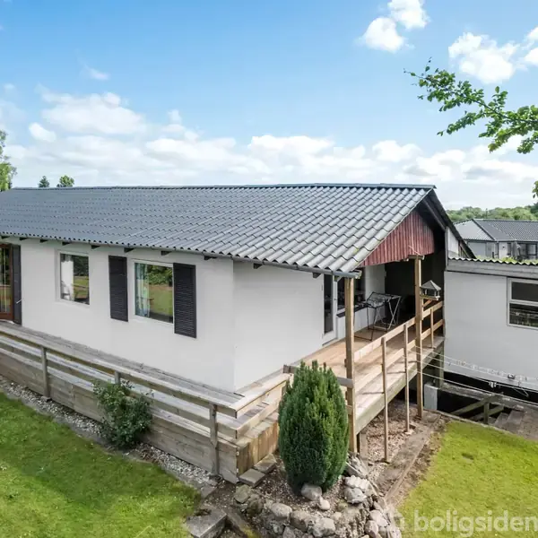 Denne villa har fået nyt tag i 2019 og er beliggende i gåafstand til cetrum, og alligevel tæt på skov og golfbane. Indeholder: Entre, 2 badeværelser, toilet, stue med brændeovn, 4 værelser, køkken, bryggers, endnu et ældre køkken og disponibelt rum/udestue med endnu en brændeovn. Derudover kælder med 2 disponible rum. Endvidere udhuse på ialt 70 kvm. med carport, redksbasrum og skur. Nem og overskuelig have med god træterrasse. Fra ejendommen ligger i gåafstand: børnehaver, skoler, Glamsbjerg Fritidscenter, biograf og svømmehal e og indlkøb r der rig mulighed for aktiviteter for hele familien. NB! Jvf. tilstandsrapport er der nogle punkter til udbedring, hvilket prisen afspejler.