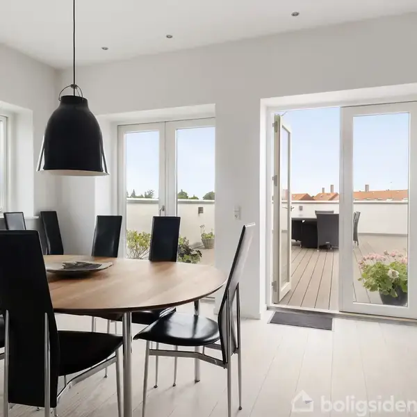 Med denne penthouse kan I sige farvel til hækkeklipning og havearbejde og goddag til en bolig, hvor villafølelsen stadig er intakt, udover at I får en skøn udsigt til byens tage og vandet. Her er muligheder for at indrette jer spændende på de talrige udearealer med hyggeområder, urban gardening med hjemmedyrkede tomater, krydderurter og blomsterflor i krukker, ligesom I kan dække lange borde eller måske endda sætte festtelte op, når familiens mærkedage skal markeres. Tænk sig at kunne fejre bryl