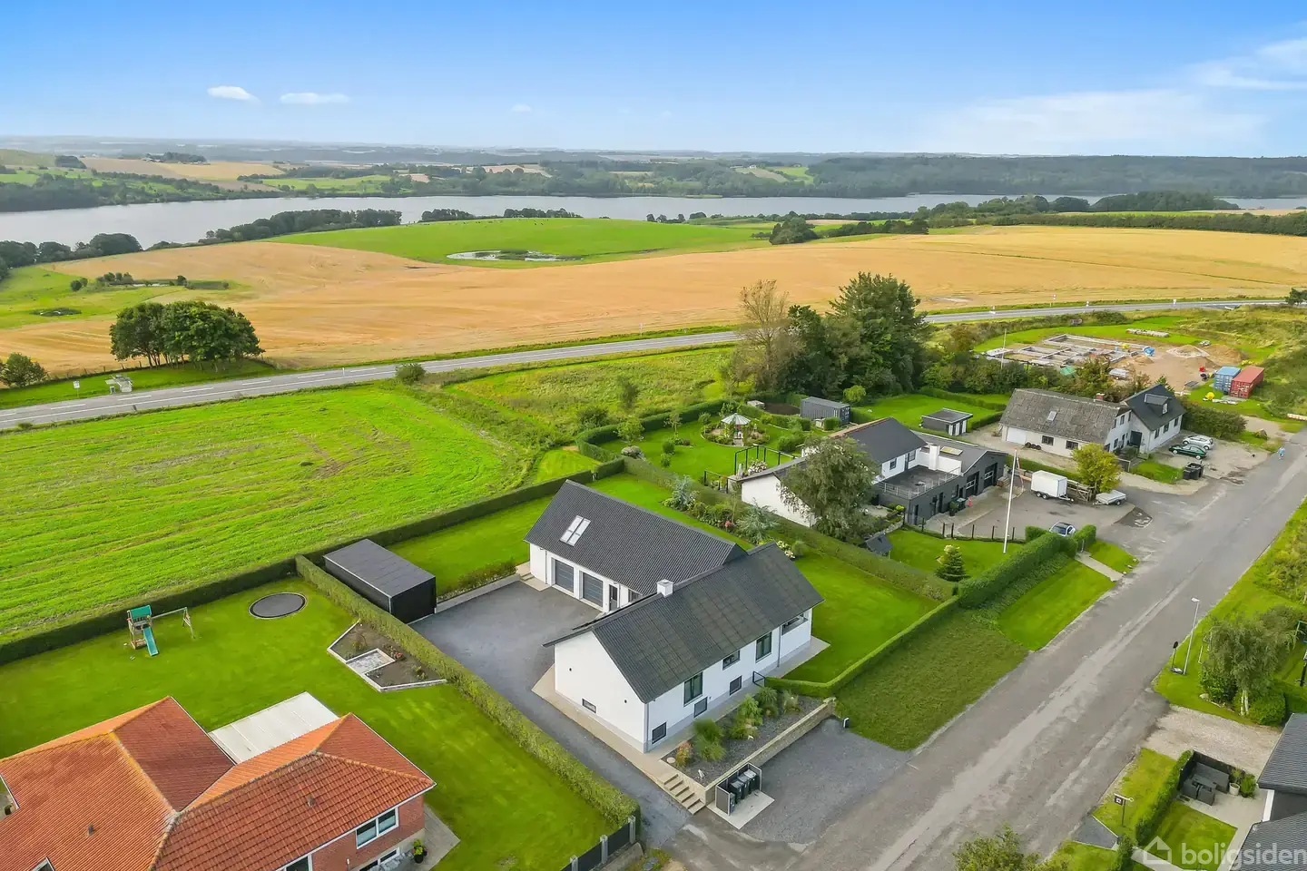 Stor, moderniseret villa med panoramaudsigt over Fussing Sø