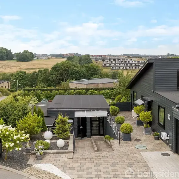 For enden af en lille, lukket stikvej – helt ugeneret og omgivet af natur – ligger dette markante og indbydende træhus på Overskov 10. En bolig, hvor arkitekturen spiller smukt sammen med omgivelserne, og hvor lys, luft og rumfornemmelse er gennemgående temaer. Allerede ved ankomsten fornemmer man husets særlige karakter. Det store træhus fremstår flot og velholdt, netop nymalet i juli 2025 inkl. vinduer, døre og alt træværk. Materialevalget og husets udtryk skaber en varm og naturlig atmosfære
