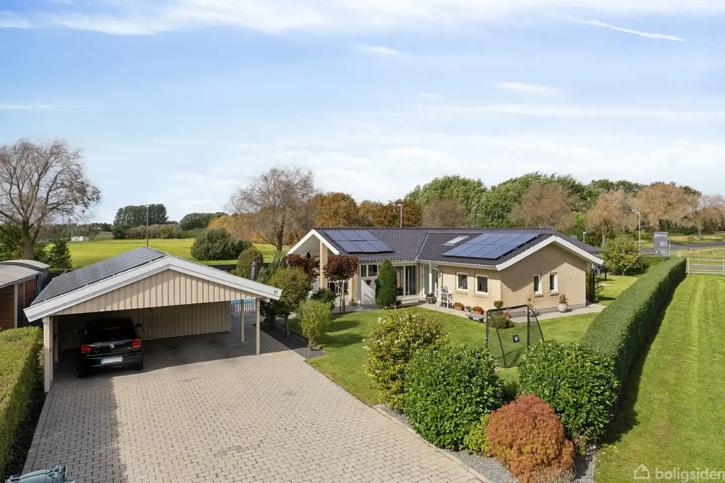 Velkommen til denne enestående villa beliggende i et af Køges mest eftertragtede områder, Den Nye Del af Nørremarken. Med et boligareal på hele 191 kvadratmeter tilbyder denne ejendom en unik kombination af moderne komfort og bæredygtige løsninger. Bygget i 2005 og med en stilfuld tilbygning fra 2009, er huset designet til at imødekomme behovene hos den store familie. Her får du et hjem, der ikke kun er rummeligt men også økonomisk fordelagtigt takket være det imponerende solcelleanlæg på 6 kW, som gør huset op til 75% selvforsynende på strøm. Villaen byder på en familievenlig planløsning med en stor entré, der fører ind til et åbent køkken-alrum. Det moderne køkken fra Rotpunkt blev installeret i 2023 og præsenterer eksklusive løsninger med integrerede hvidevarer og rigelig skabsplads. Alrummet har plads til både madlavning og samvær omkring spisebordet under det fantastiske lysindfald fra de store vinduer. Stuen imponerer med loft til kip og direkte udgang til den solrige overdækkede terrasse. Udendørsområdet er intet mindre end spektakulært med sin sydlandske stemning omkring poolen, der kan bruges fra maj til oktober takket være sol/vand-anlægget samt varmepumpen drevet af husets solceller. Forældrene vil sætte pris på deres egen afdeling med privat bad og god skabsplads, mens børneafdelingen tilbyder tre værelser samt eget badeværelse. Den praktiske tilbygning rummer to ekstra store værelser – perfekt for gæster eller teenagebørn – mens bryggerset giver masser af plads til familiens vasketøj. Ejendommen har været ejet af samme ejer siden opførelsen og fremstår derfor velholdt og indflytningsklar. Beliggenheden kunne næsten ikke være bedre; tæt på Køge Torv, hurtig adgang til Ølby station samt naturskønne omgivelser ved Åsen gør dette område ideelt for dem, der ønsker både bylivets bekvemmeligheder og naturens ro lige udenfor døren. Med direkte adgang via stisystemer til den lokale skole bliver hverdagen let for børnefamilier.