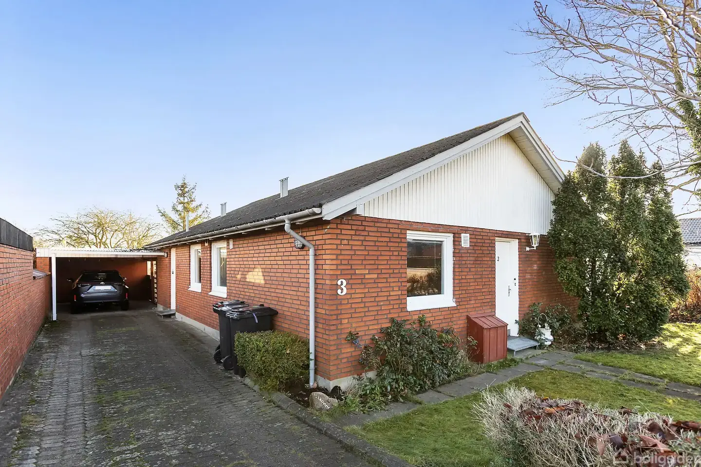 Åbent hus med tilmeldingskrav 3/2 - klik på billede - Pallasvej 3 er en klassisk og velholdt rødstensvilla, der ligger fredeligt og trygt i et etableret villakvarter i Aalborg SV. Her får du en overskuelig bolig i ét plan med gode, lyse rum og en planløsning, der fungerer både til den unge familie, parret og dig, der ønsker en velindrettet bolig i ét plan. Med beliggenhed på Pallasvej bor du tæt på indkøb, skole, daginstitutioner, fritidsaktiviteter og gode busforbindelser, samtidig med at de overordnede veje er let tilgængelige. Indenfor byder boligen velkommen i en klassisk entré, hvorfra en fordelingsgang binder hjemmets rum sammen. Her finder du tre gode værelser – et rummeligt soveværelse med skabsplads samt to disponible værelser, der let kan indrettes som børneværelser, gæsteværelser eller hjemmekontor. I samme afdeling ligger både et separat toilet og husets badeværelse, som er indrettet stilrent med hvide inventar og badekar. Boligens naturlige samlingspunkt er den store og lyse stue. De flotte parketgulve, det hvide loft og det store vinduesparti mod haven skaber en indbydende atmosfære med et behageligt lysindfald dagen igennem. Her er god plads til både sofaafdeling og spiseplads med plads til familien, og via terrassedøren forlænges opholdsrummet naturligt ud på terrassen, som giver god mulighed for at nyde solen dagen rundt. Køkkenet ligger separat, men i tæt forbindelse med stuen, og fremstår som et klassisk spisekøkken med træfronter, god bordplads og fine opbevaringsmuligheder. Her er også plads til spisebord til hverdagens måltider. I den anden ende af huset finder du bryggers/vaskerum til de praktiske gøremål. Der er egen indgang fra indkørslen, som giver en funktionel detalje, der gør hverdagen ekstra nem. Foran huset mødes du af en lukket grund med forhave, god lang indkørsel med carport i forlængelse af boligen. Her er god plads til bil, og i forbindelse med carporten ligger et praktisk skur til cykler, haveredskaber og opbevaring. Baghaven er anlagt med flisebelagt terrasse og et mindre havehus, som kan bruges til hobby, værksted eller ekstra opbevaring. Haven er simpelt anlagt og indbyder til hyggelige opholdssteder og plads til leg. Her får du en rummelig og velfungerende bolig, som er indflytningsklar, men løbende kan sætte dit eget personlige præg.