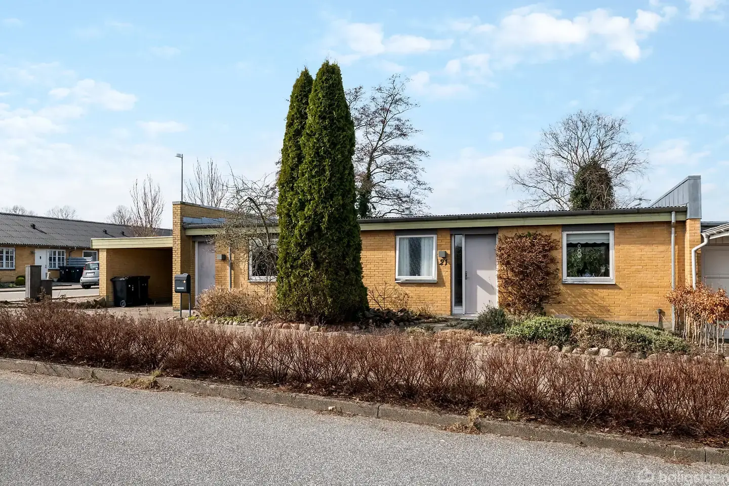 Velholdt rækkehus til salg i Hammerum. På Palle Fløes Vej 21 i Hammerum finder I dette velindrettede enderækkehus med en funktionel planløsning. Huset rummer 128 m² fordelt på ét plan og byder på tre værelser, en rummelig stue, et køkken, et badeværelse og et praktisk bryggers. Den velholdte bolig fremstår indbydende og giver mulighed for at skabe præcis det hjem, I ønsker. Rækkehuset er beliggende i Hammerum, som tilbyder en hyggelig atmosfære, gode faciliteter og naturskønne omgivelser. Omr
