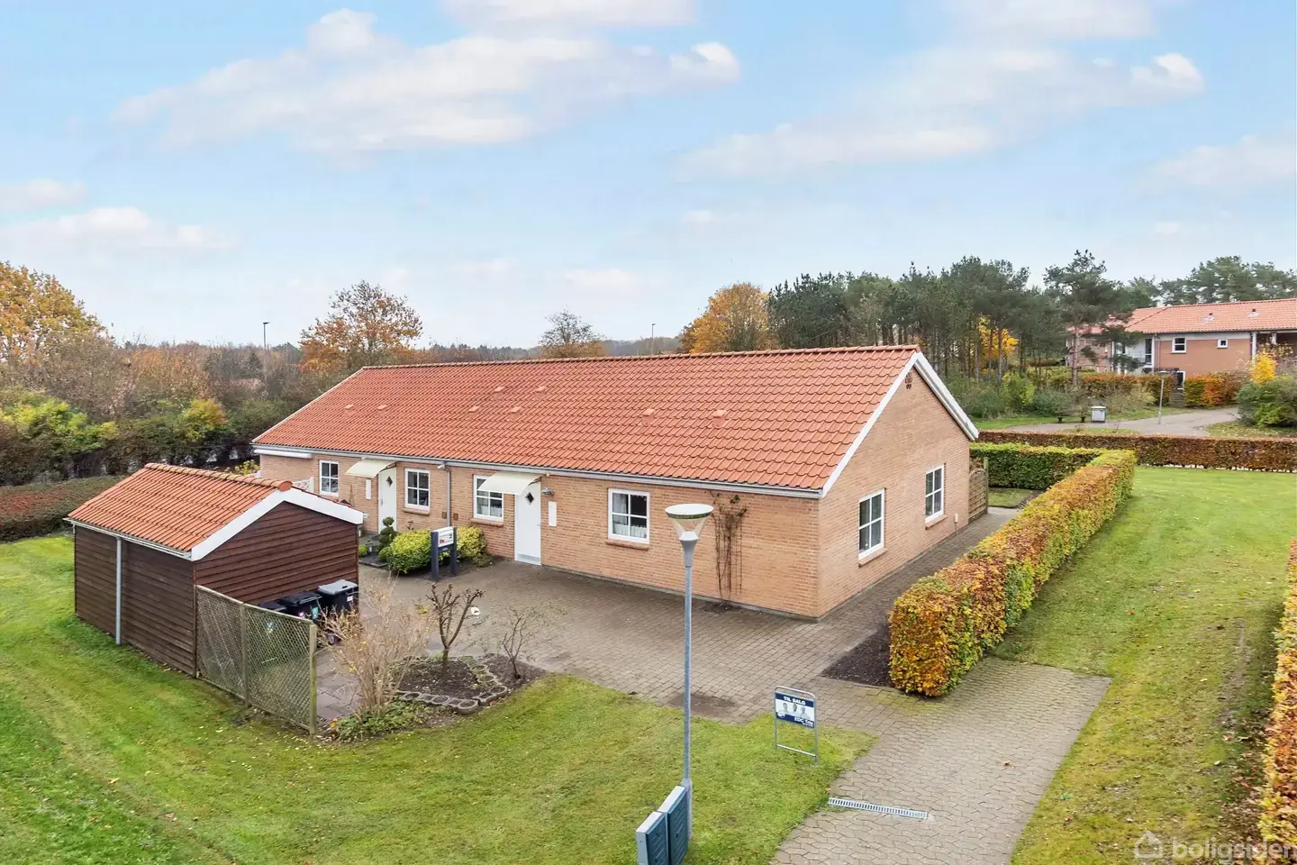 Åbent hus med tilmeldingskrav 3/2 - klik på billede - Drømmer du om en bolig, hvor hverdagen bliver nem og overskuelig, og hvor du har alt lige ved hånden? Velkommen til Panvej 2 - et indbydende rækkehus i ét plan, beliggende i det populære Paderup-område. Her får du en kombination af byens bekvemmeligheder og grønne omgivelser, der giver dig mulighed for at nyde det bedste af begge verdener. Central beliggenhed med alt inden for rækkevidde: Fra hoveddøren har du kun ca. 600 meter til Randers Storcenter, og bybussen til centrum stopper næsten lige udenfor. Indkøb, shopping, caféer og daglige ærinder klares nemt, mens grønne stisystemer og rekreative områder giver mulighed for afslapning og frisk luft. Området byder desuden på gode uddannelsesinstitutioner – perfekt for både unge og familier. Boligen – lys, funktionel og indbydende: Rækkehuset er ideelt for dig, der ønsker en praktisk og vedligeholdelsesfri bolig. Fra den rummelige entré har du adgang til et bryggers med plads til vaskesøjle og opbevaring. Badeværelset er stort og lyst med bruseniche og har direkte adgang til soveværelset – en detalje, der gør hverdagen ekstra komfortabel. Husets hjerte er det åbne køkken/alrum med stue, hvor den hyggelige karnap lader lyset strømme ind og skaber en varm atmosfære. Her er plads til både hverdagshygge og gæster. Derudover får du et ekstra værelse, som kan bruges som børneværelse, kontor eller gæsteværelse. Nem have og gode udendørsfaciliteter: Haven er overskuelig og anlagt med flere terrasser, så du altid kan finde dig en hyggelig og solbeskinnet plet. Foran huset finder du et praktisk redskabsrum med plads til cykler og havemøbler, og som en ekstra bonus har boligen egen carport. Opvarmningen sker via fjernvarme, som sikrer en stabil og økonomisk varmekilde året rundt. Foruden den skønne bolig, er der via grundejerforeningen adgang til og mulighed for lån af fælleshus. Fælleshuset kan rumme op til 50 personer. Klar til at opleve boligen? Lyder Panvej 2 som dit næste hjem? Så kontakt os allerede i dag for en fremvisning – vi glæder os til at byde dig velkommen!