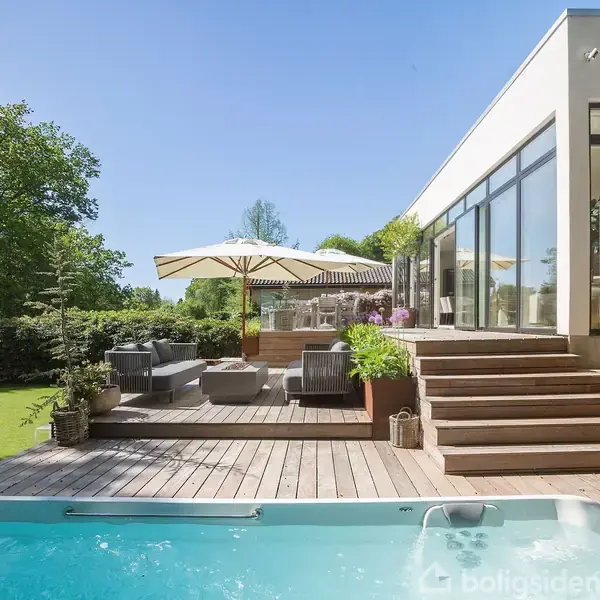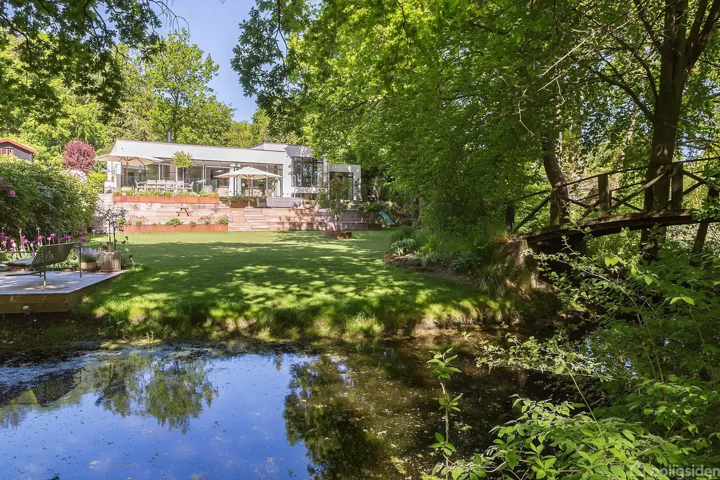 Åbent hus med tilmeldingskrav 18/2 - klik på billede - En 100% gennemført bolig, hvor der er kælet for alle detaljer! Diskret tilbagetrukket fra superbørnevenlig lukket villavej i det fredfyldte Paradiskvarter i Holte, og direkte til meget smukt natur omkring bugtet sø med lille bro og ø. Ankomst i virkelig flot hall / ankomst rum med kæmpe ovenlysvindue og adgang til stort praktisk garderoberum. Videre til det skønne store dejlige leverum med opholdsstue, spisestue og køkken/alrum der flyder sammen i et rum, men alligevel naturligt opdelt. Lækkert og stilfuldt køkken i mørkt træ med smuk og eksklusiv bordplade i quartzite. Rummet deles op af flot gennemgående brændeovn og der er akustiklofter samt kæmpe dobbelt dør- og vinduespartier fra gulv til loft som trækker de smukke omgivelser helt ind i hjemmet. Via separat fordelingsgang er der adgang til 3 børneværelser samt badeværelse. Op ad et par trin er der den fedeste forældreafdeling med stort kontor/værelse, luksuriøst badeværelse, lækre indbyggede skabe samt et par trin ned til forældresoveværelse med adgang til walk-in. Et par trin nede fra hall’en er der biograf, toplækkert bryggers og ekstra badeværelse. Haven og grundens muligheder er perfekt integreret i boligen. Blandt andet det kæmpestore terrassemiljø ud for køkken/alrum/opholdsstue i forskudte niveauer, men også den heri integrerede svømmespa, de stilfuldt anlagte corten blomsterbede, den skønne træterrasse ved søen hvor der er aftensol og kig til den lille fine bro. Foran er der dobbelt carport, lille træterrasse og masser af plads til at spille basketball eller øve rulleskøjter. Her har arkitekten tænkt over flotte lyseffekter mellem carport og villa, - en stilfuld detalje! I carporten er integreret udhus hvor der både er opmagasinering og fitnessrum. Kvarteret er supereftertragtet pga. den fantastiske ro, som sjældent ses i Nordsjælland. Herudover egen skole i kvarteret, fredfyldte og rolige villaveje samt kort afstand til S-tog, indkøb og bymiljø. Ring for fremvisning på 21 70 00 11 eller book her via siden.