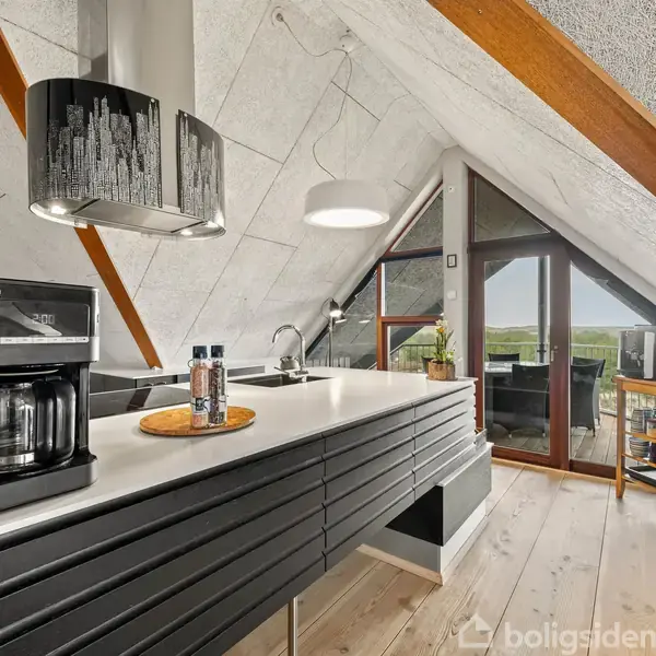 På en af Fanøs mest eftertragtede adresser, Paradisvej 62, finder I dette imponerende og arkitektonisk spændende feriehus, der kombinerer klassisk vestjysk charme med moderne komfort og en enestående beliggenhed tæt på Vesterhavet. Her er blot ca. 450 meter til den brede sandstrand, mens udsigten over klitlandskabet og havet sætter rammen om et helt særligt fristed. Ejendommen rummer 227 m² og er indrettet med plads og funktionalitet i fokus. Med 4 rummelige soveværelser og 2 badeværelser er huset ideelt til både den store familie, flere generationer eller som luksuriøst feriehus med venner. Huset er samtidig tilmeldt udlejning og har i 2025 genereret ca. 350.000 kr. i lejeindtægt, hvilket gør ejendommen særdeles interessant for købere med investeringsmæssige overvejelser. Soveafdelingen er praktisk placeret med tre værelser i stueplan og ét på førstesalen. Alle værelser har dobbeltsenge og direkte udgang til terrasse eller altan. Der er badeværelse på begge etager, og i stueplan finder I både sauna og spabad, der indbyder til afslapning året rundt. På førstesalen ligger husets naturlige samlingspunkt - det åbne køkken-alrum og stue med brændeovn. Her strømmer lyset ind, og fra opholdsrummene er der udgang til flere skønne altaner, hvor morgenkaffen kan nydes med udsigt over klitterne og Vesterhavet. Huset opvarmes med luft-til-vand varmepumpe med gulvvarme i hele ejendommen, undtagen aktivitetsrum og teknikrum, hvilket sikrer både høj komfort og energieffektiv drift. Ejendommen byder desuden på både aktivitetsrum med billard, bordtennis og bordfodbold samt et separat motionsrum - perfekte rammer for både afslapning og underholdning. Udendørs finder I et væld af terrasser og altaner, flere delvist overdækkede og afskærmede, så udelivet kan nydes i al slags vejr. Som et ekstra luksushighlight er der udespa, hvor I kan slappe af under åben himmel. Der er naturligvis også havemøbler, solsenge og grill. Herudover er der lademulighed til elbil, hvilket øger ejendommens anvendelighed og udlejningsattraktivitet. Fanøs unikke natur ligger lige uden for døren. Beliggende op til fredet område (Gåsehullerne). Via nærliggende stisystemer kan I gå gennem klit- og hedelandskabet direkte til stranden. Fanø er kendt for sine brede sandstrande, ravfund, fantastiske cykelruter og muligheden for at køre bil på dele af stranden - en helt særlig oplevelse. Paradisvej 62 er en sjældent udbudt ejendom, der både egner sig som privat feriebolig og som attraktiv udlejningsejendom med dokumenteret indtjeningspotentiale.