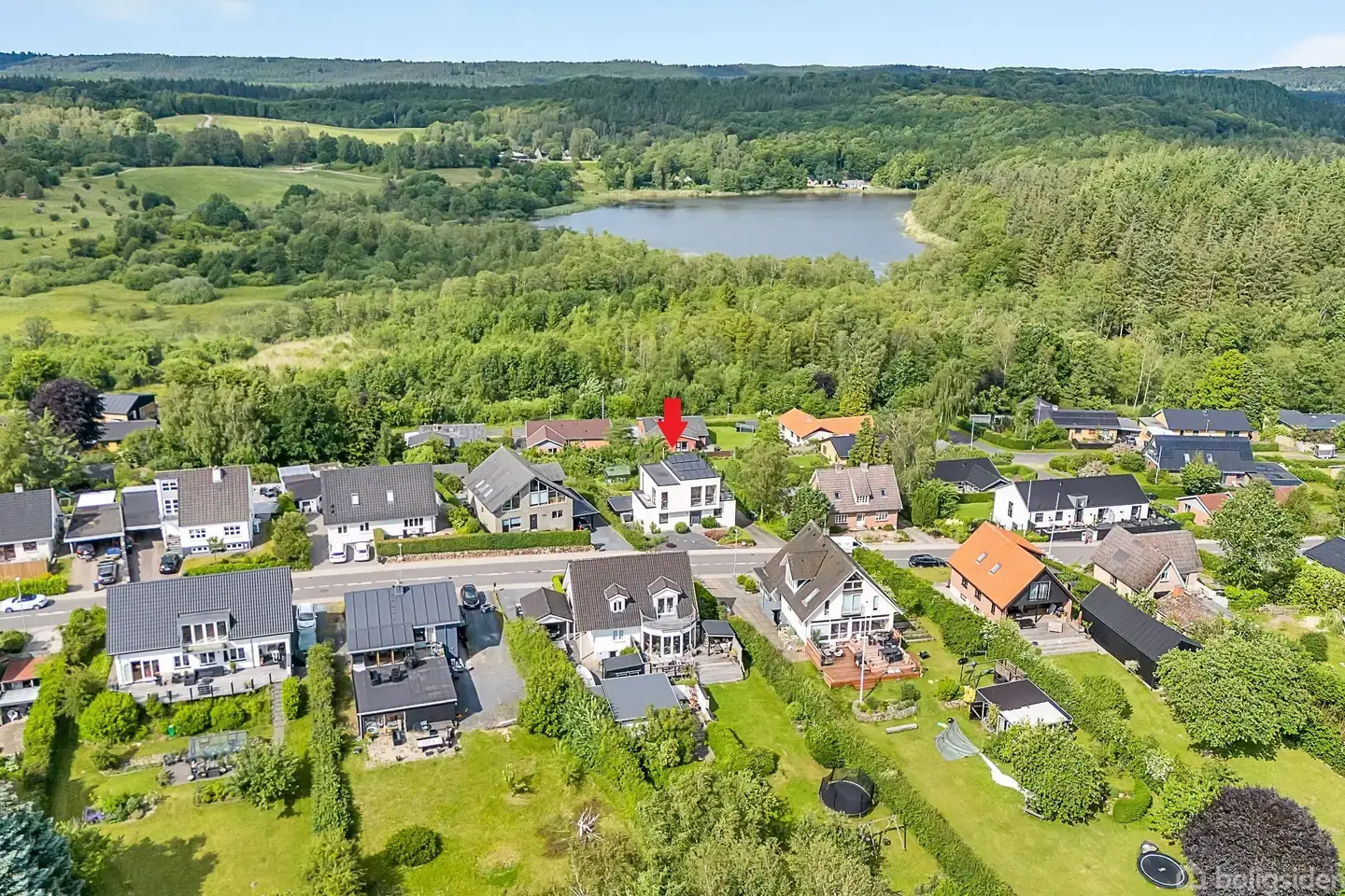 Arkitektdesignet udsigtsvilla i Virklund med panoramavue til skov og sø